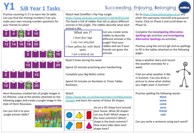 Please find this weeks home learning tasks below. They have also been emailed out and some have sheets attached to them.