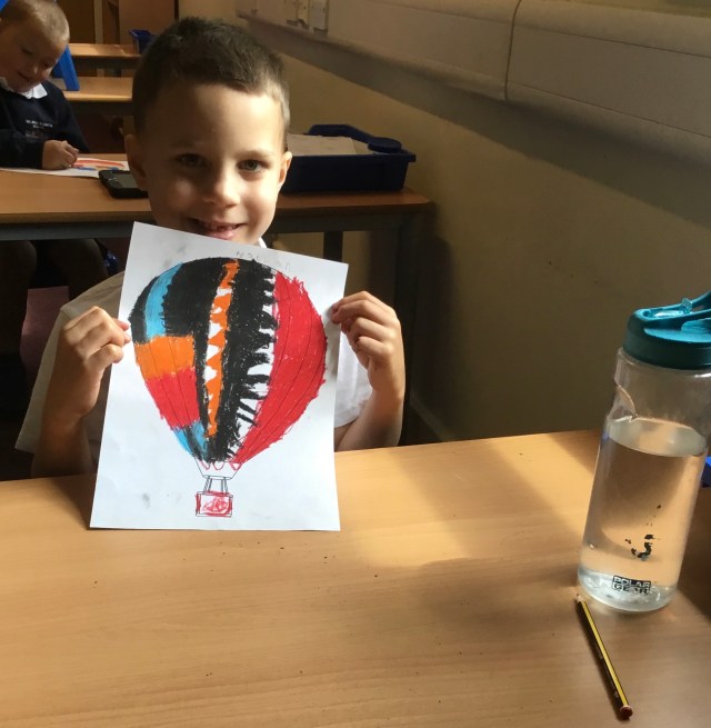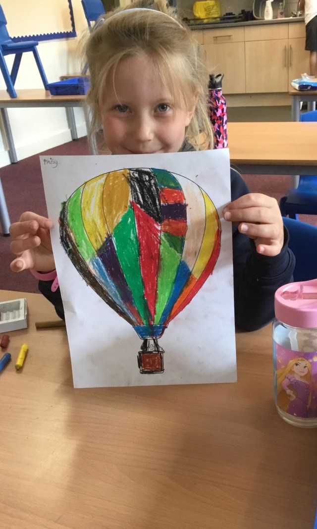 Year 1 have been busy designing their own hot air balloons using oil pastels this afternoon.