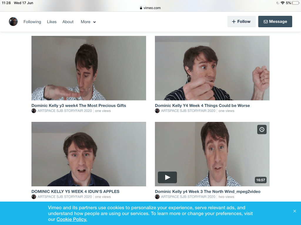Our storytellers have requested your help. They would like each year group to watch their story and create artwork to bring it to life. Your artwork will then feature on the storytellers website for all to enjoy! Please visit the below address to remind yourself of your year group’s story and then send us a photograph of your finished artwork. https://vimeo.com/artspacesjbstoryfair