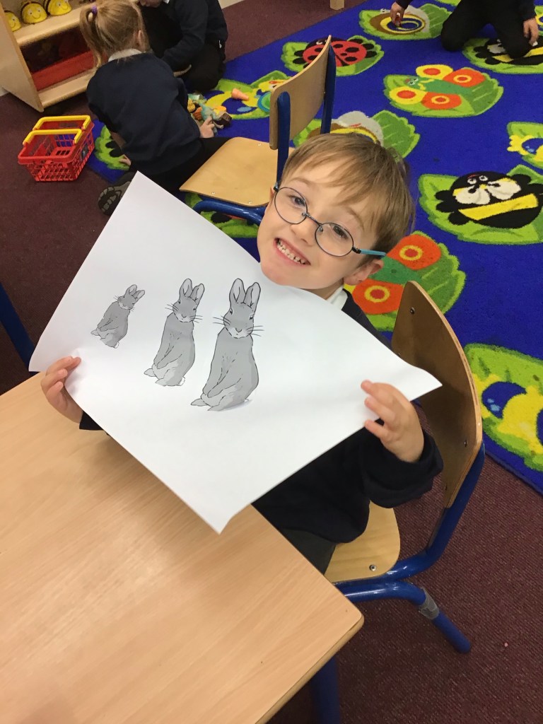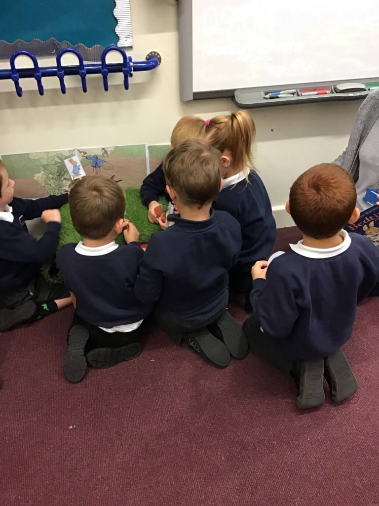 Today in Reception we started reading Peter Rabbit. The children enjoyed acting out the story with puppets. We also discussed what shortest and tallest meant. We put the rabbits in order from tallest to the shortest and the other way round.