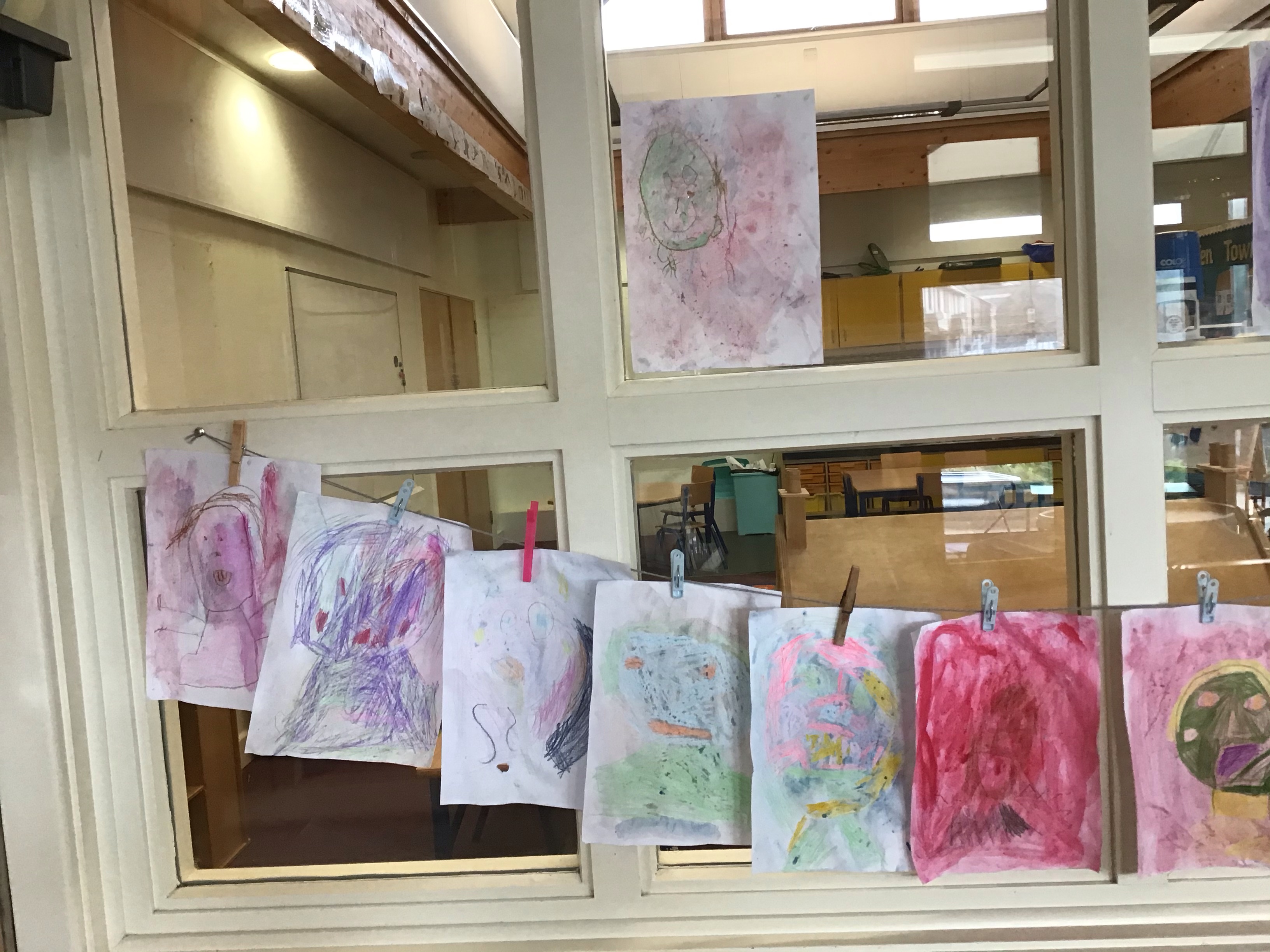 Reception have made some brightly coloured self-portraits. First we drew and coloured ourself in crayon. Then we used a watercolour wash over the top. 🖍