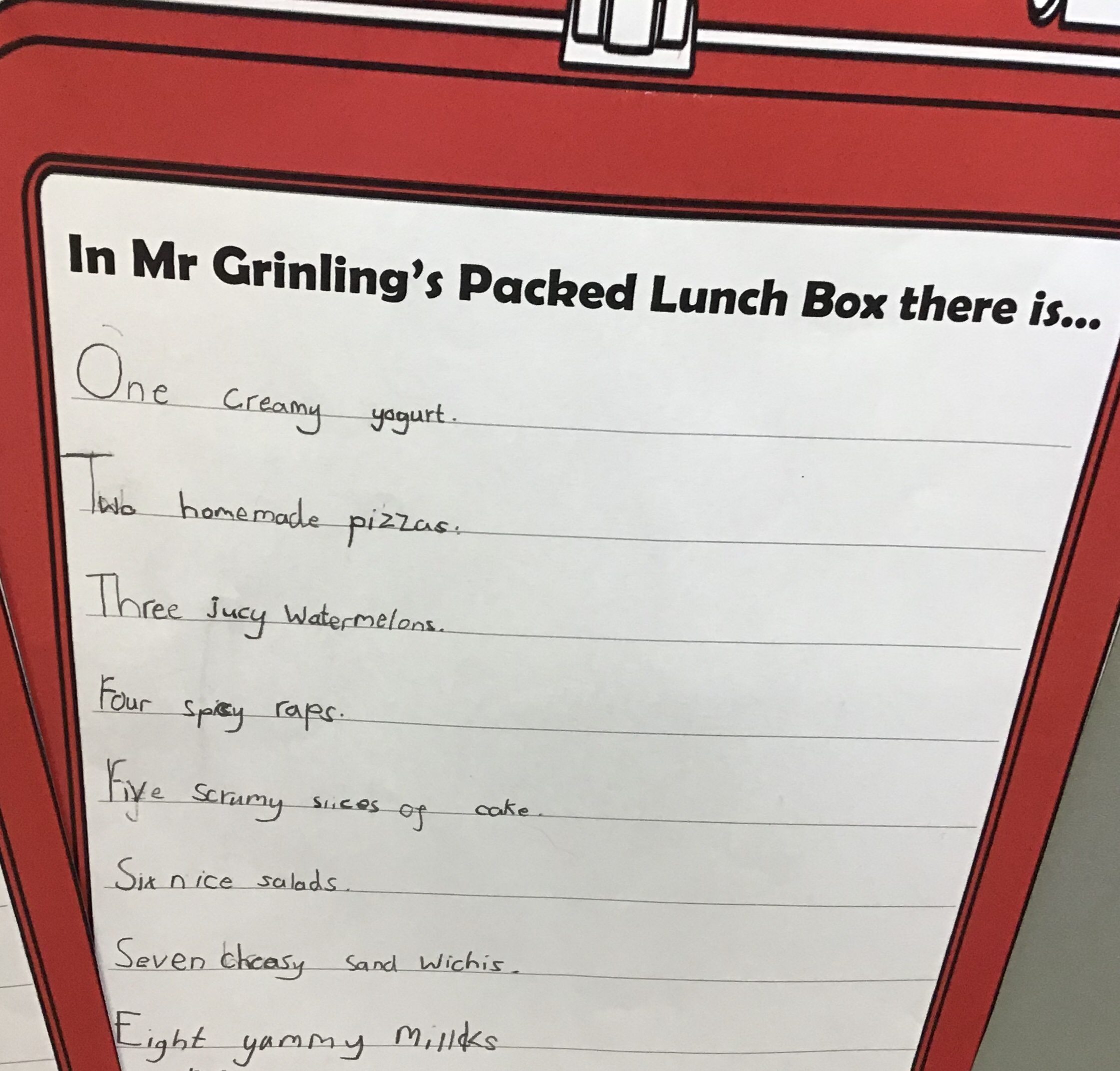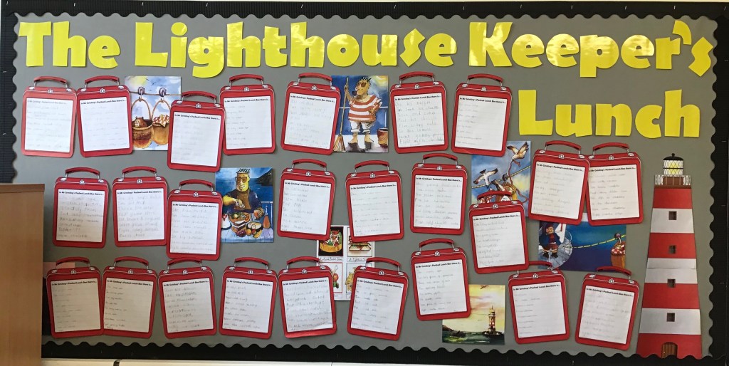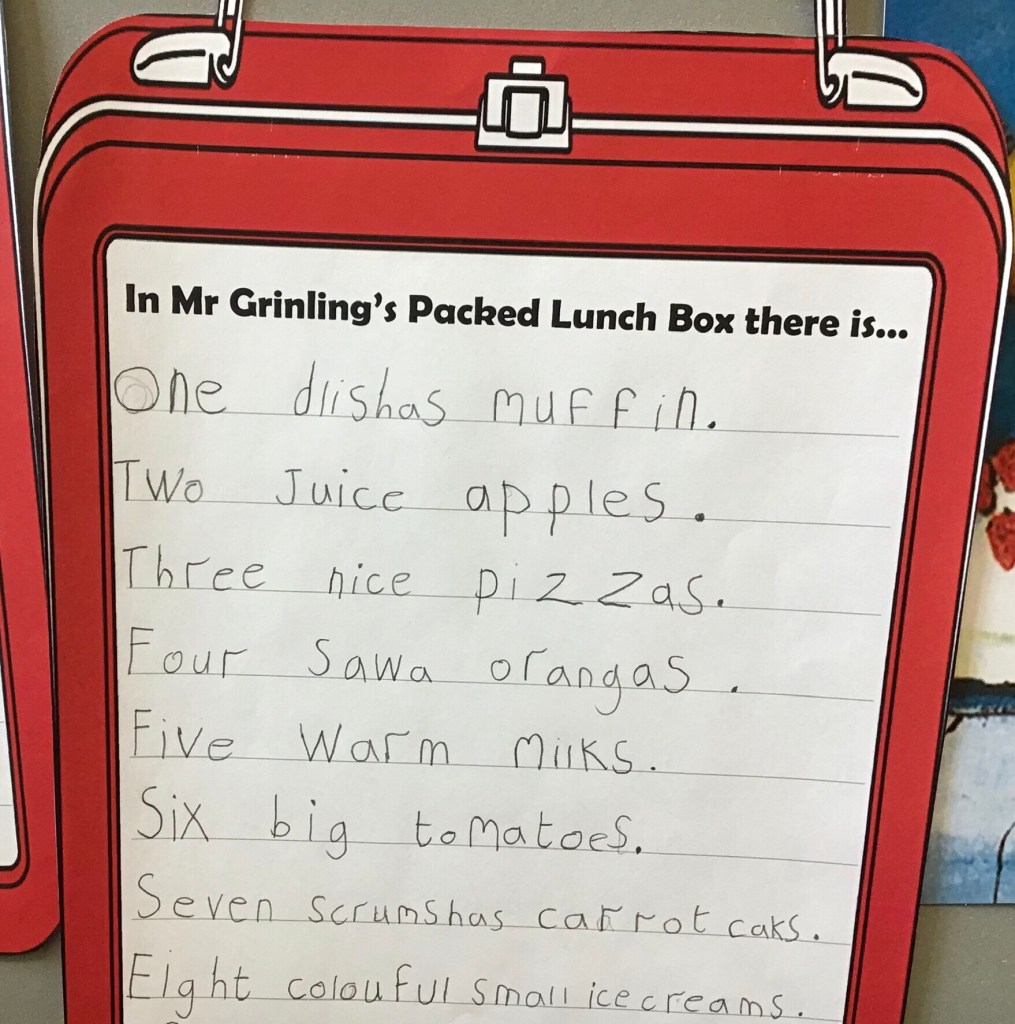 Year Two have been writing list poems about what’s inside Mr Grinling’s packed lunch from The Lighthouse Keeper’s Lunch.