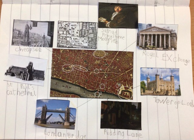 Year 2 have been busy looking at where the Great Fire of London spread to and creating fire collages.