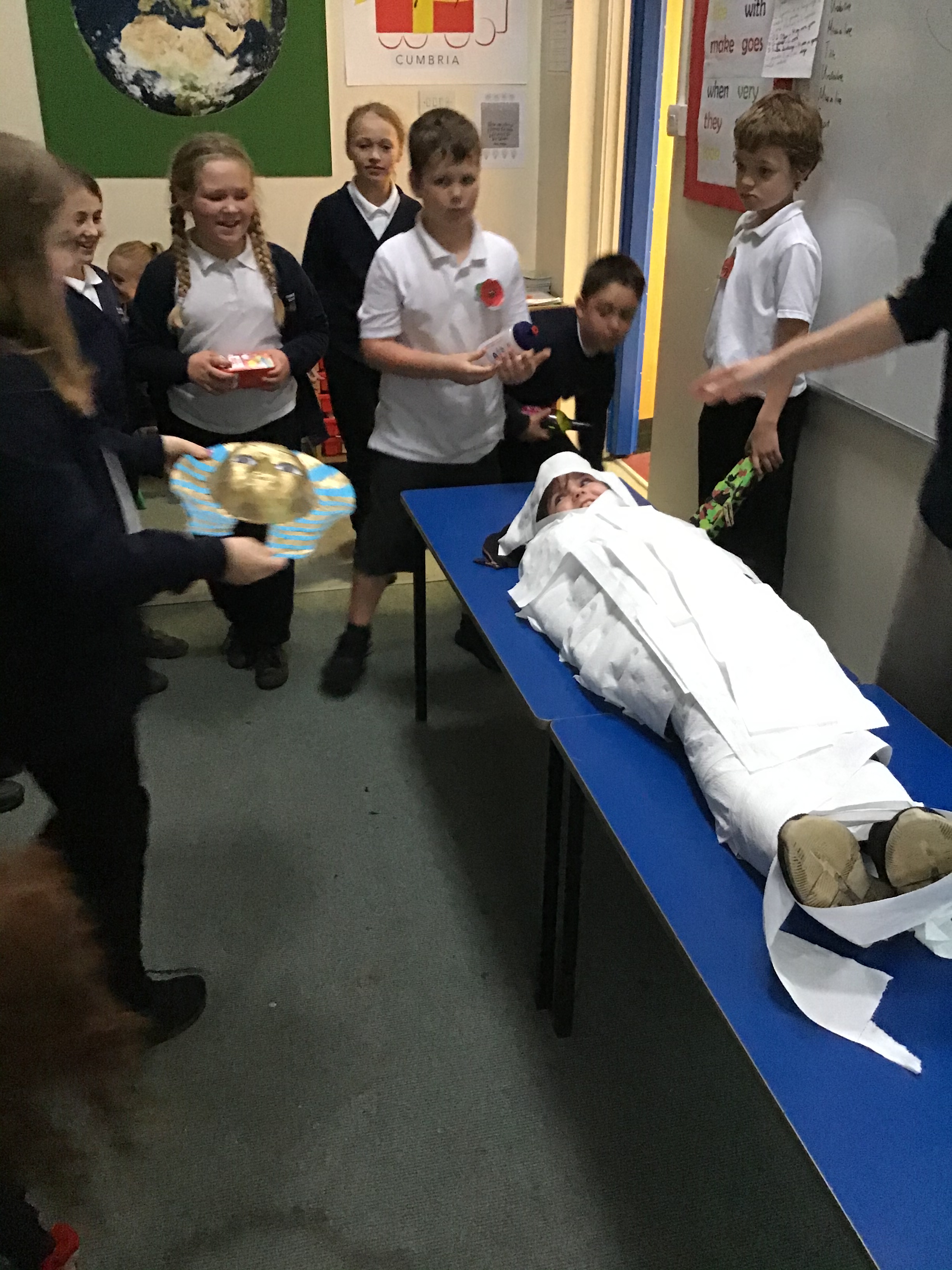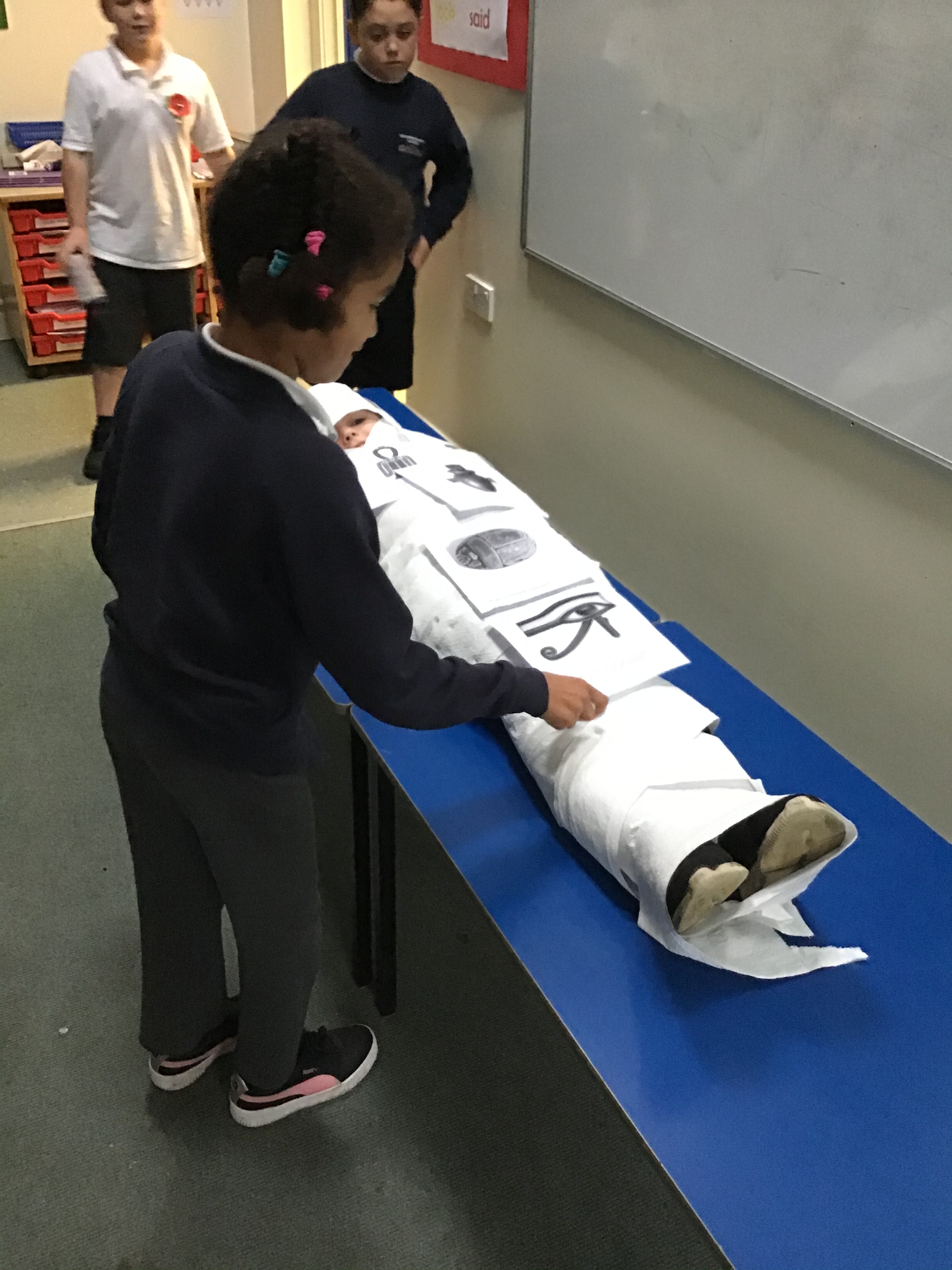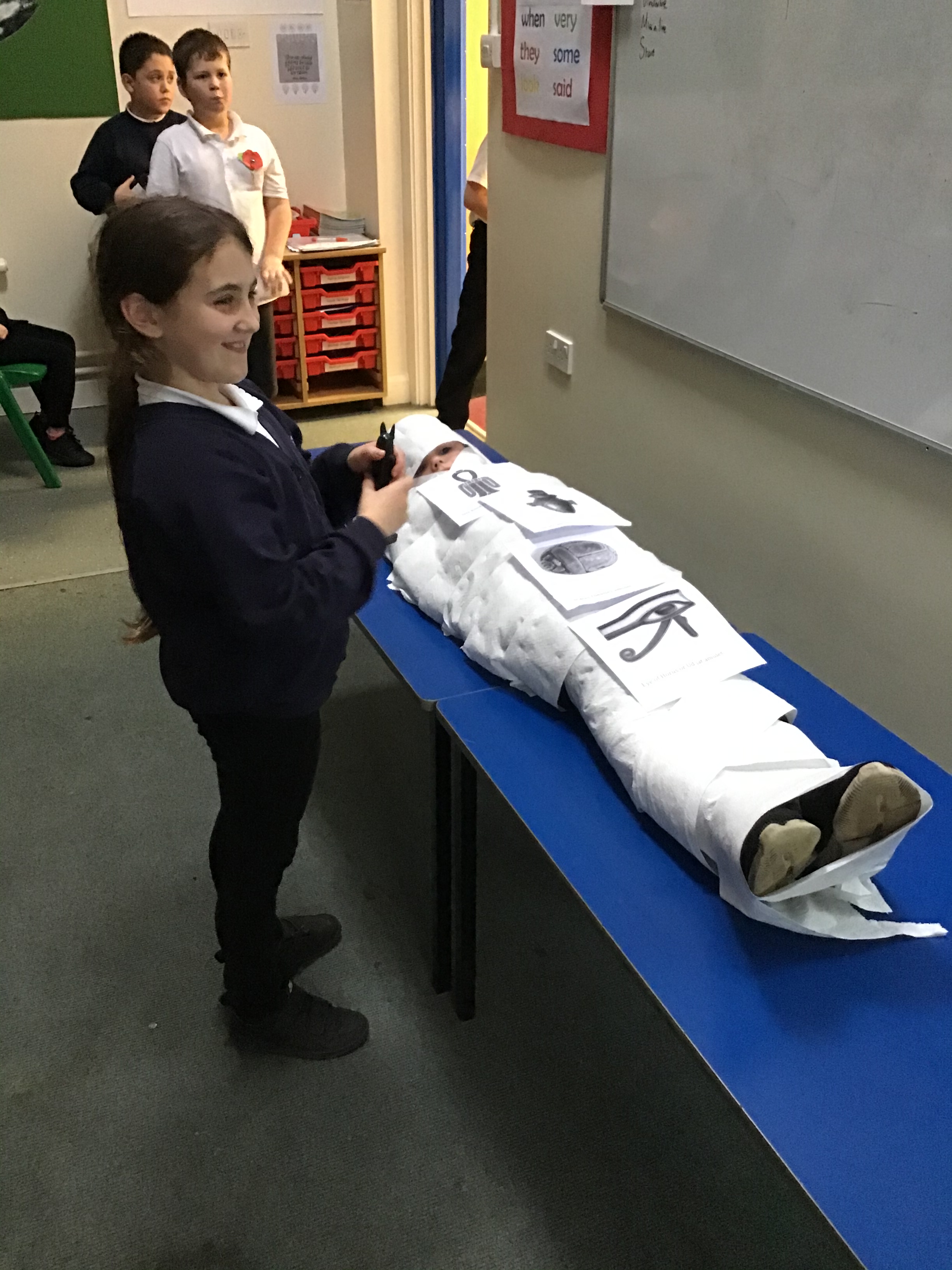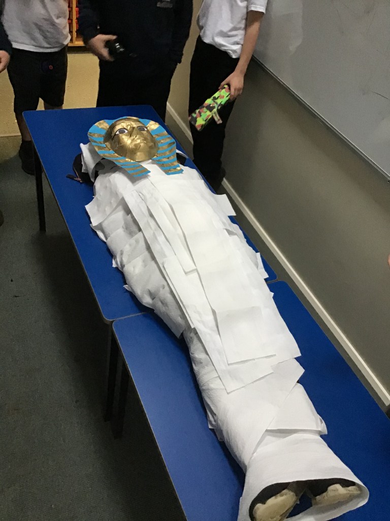 It’s ‘dead complicated’ to make a Mummy (tee-tee) but we managed. Well done Ruby on volunteering for the mummy operations table and thank you to Karolina and Maddie for such super additional models.