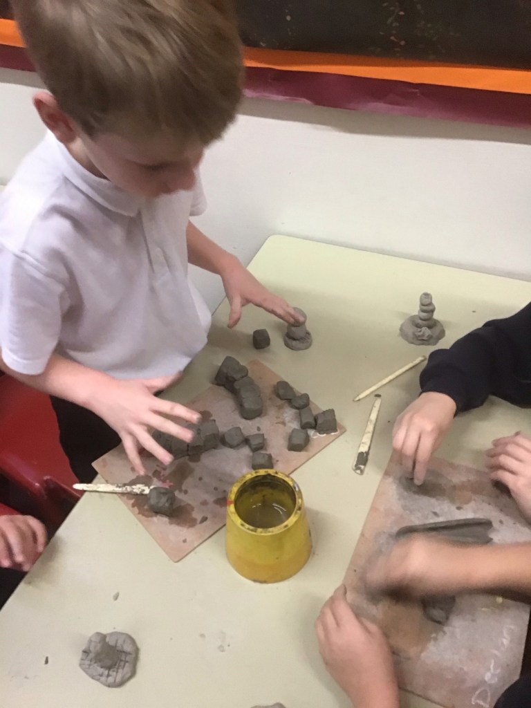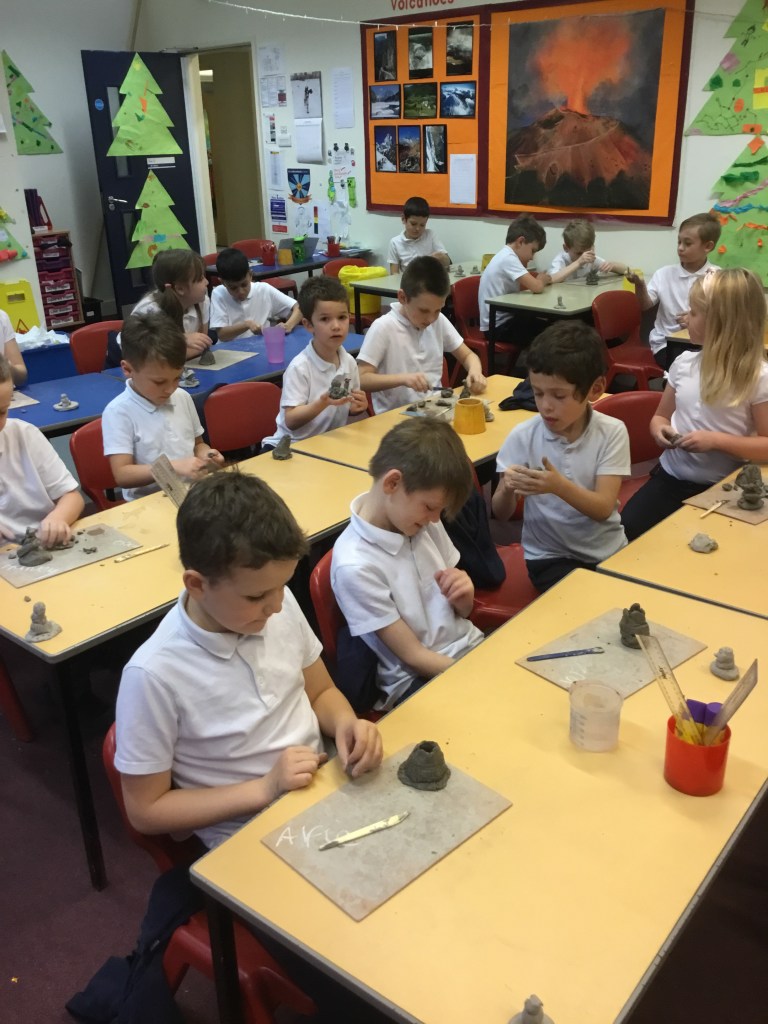 We have spent this week joining clay. The children began joining and making bases on Tuesday. They worked in groups to make Roman Arches on Wednesday. They returned to one of their favourite topics on Thursday and made a volcano.