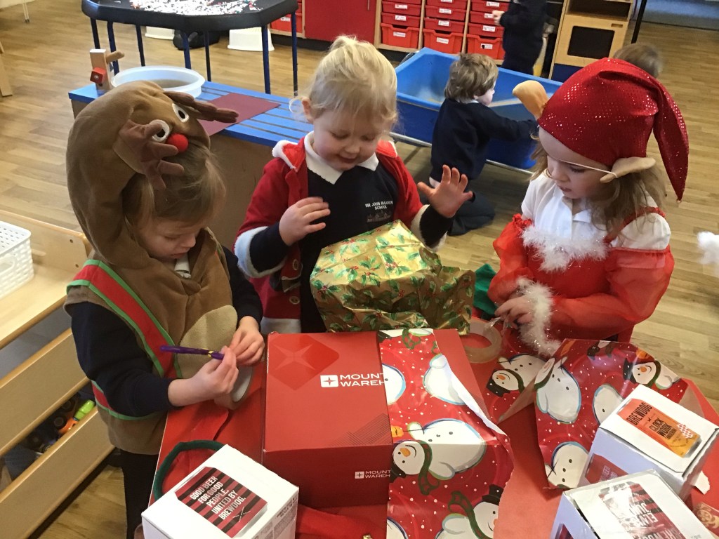 There was lots to do in Father Christmas’s workshop so Nursery got to work, helping to wrap up the parcels (and also explored 3D shapes at the same time) 🎅🏻🎁