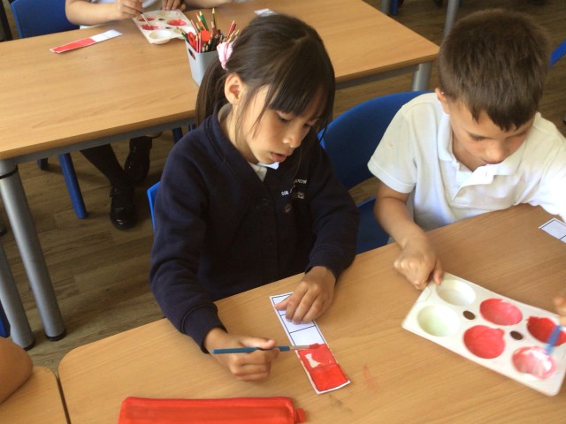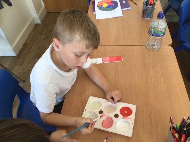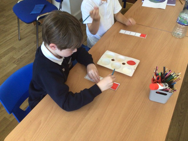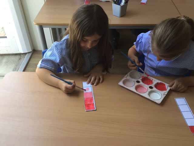 We explored tints and shades yesterday in Art. We mixed white with red to make tints and red with black to make shades.
