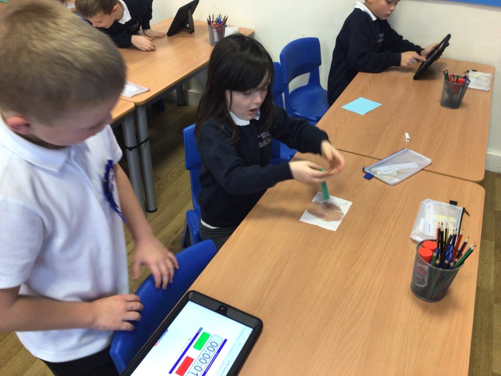 Year 2 have been looking at materials in their Science work this term. Today we tested which materials are absorbent and which are not.