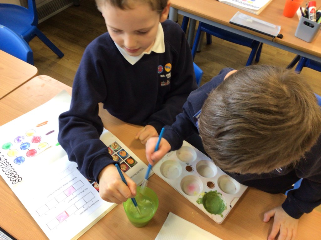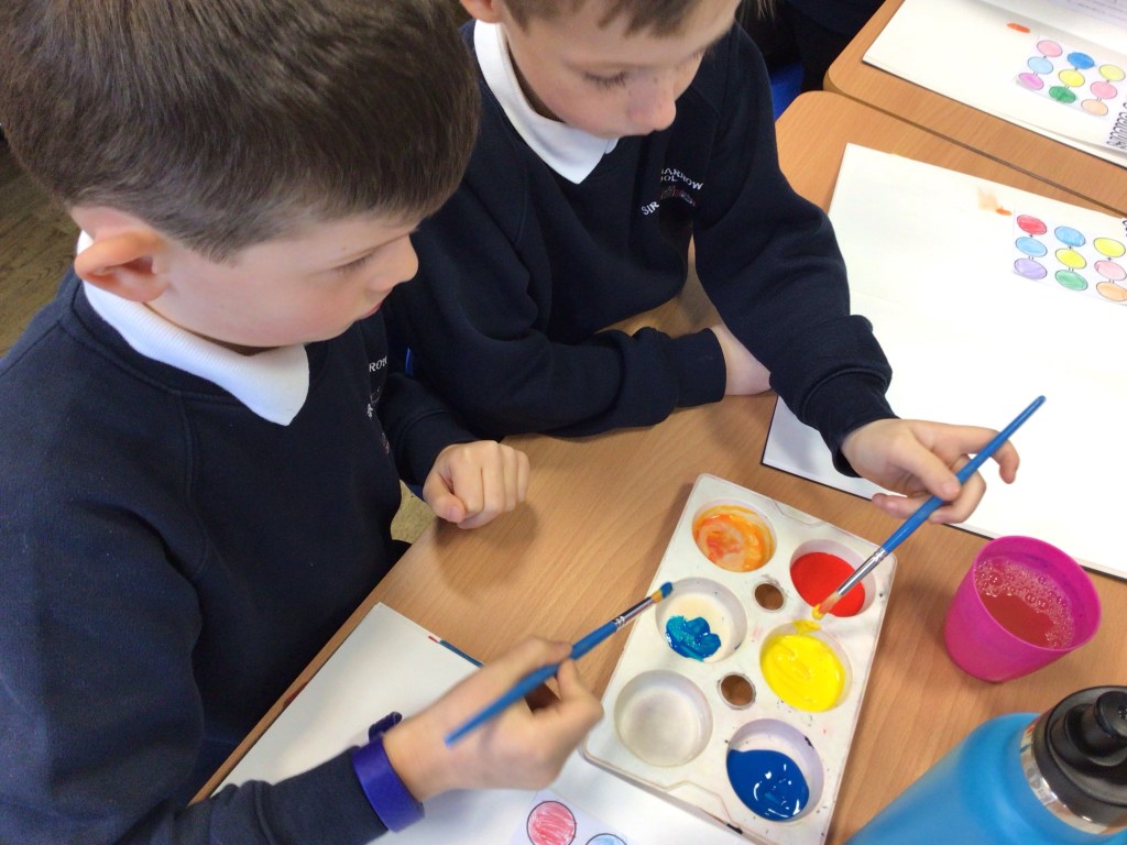 Year 2 are focusing on Art this week in our afternoon lessons. Today we explored making the secondary colours using poster paint and powder paint. Apologies for the mess of some of the children today after using powder paint…🙈 🎨