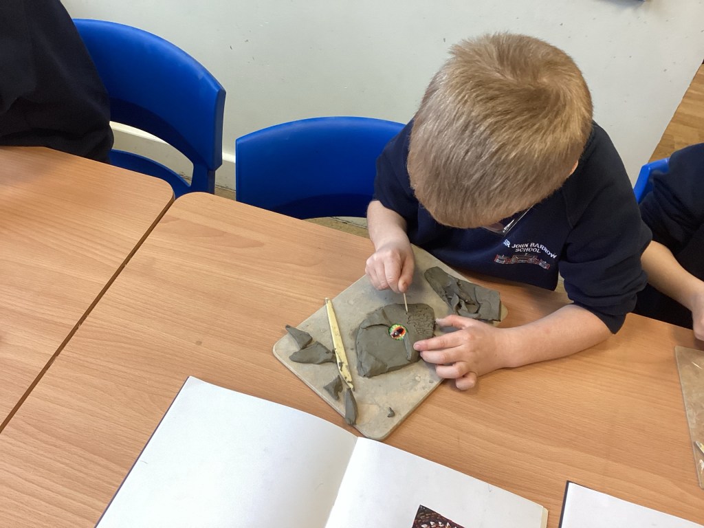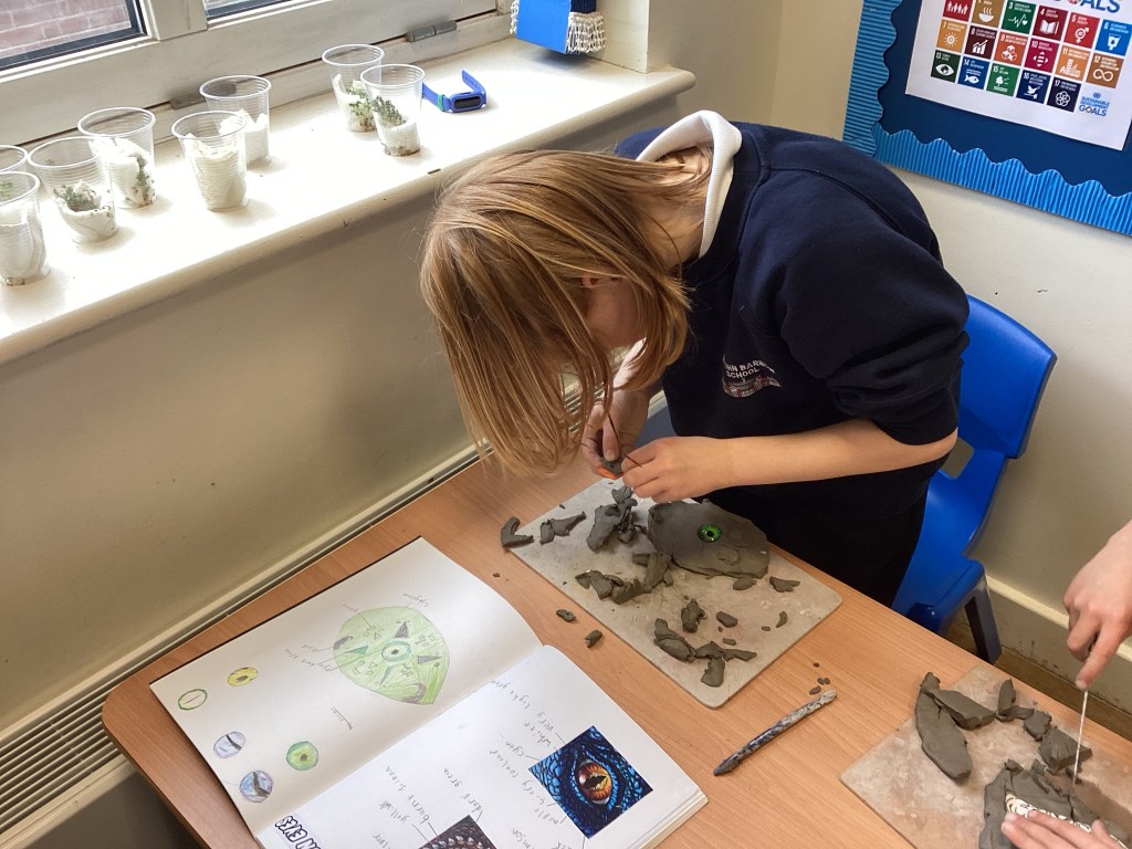Year 2 have been busy designing their own dragon eyes in Art. Today we made one out of clay carefully following our design. We added different textures to our eyes using different clay tools.