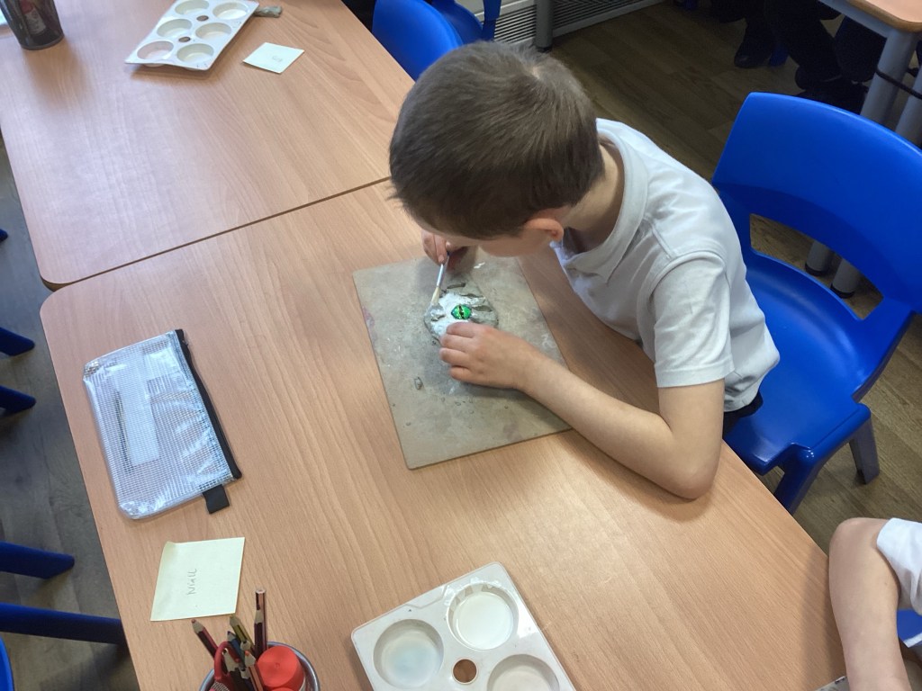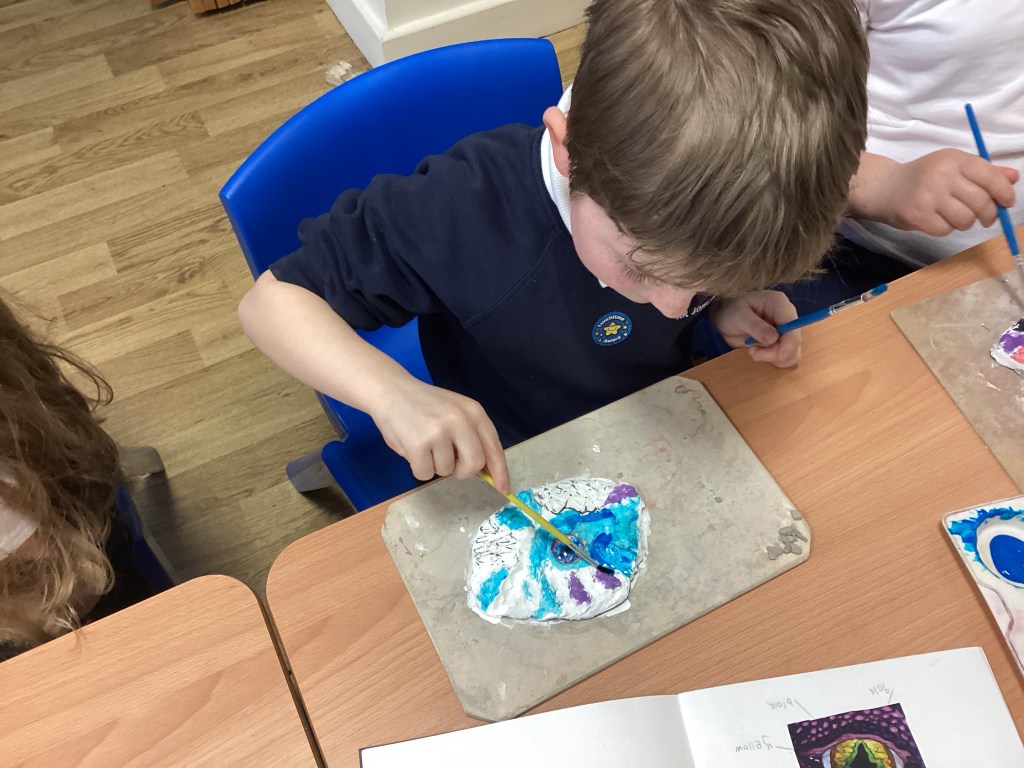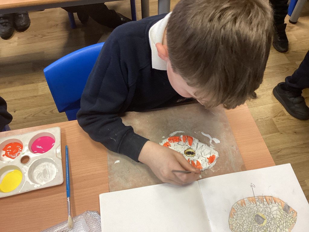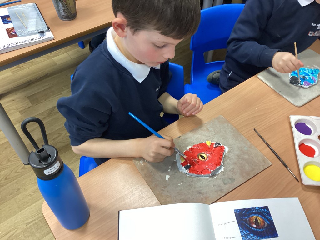 Year 2 were busy painting their clay dragon eyes following their designs on Friday. We will show you the finished pieces soon!
