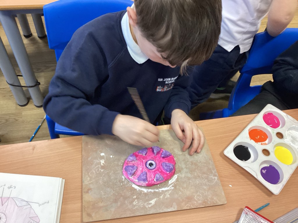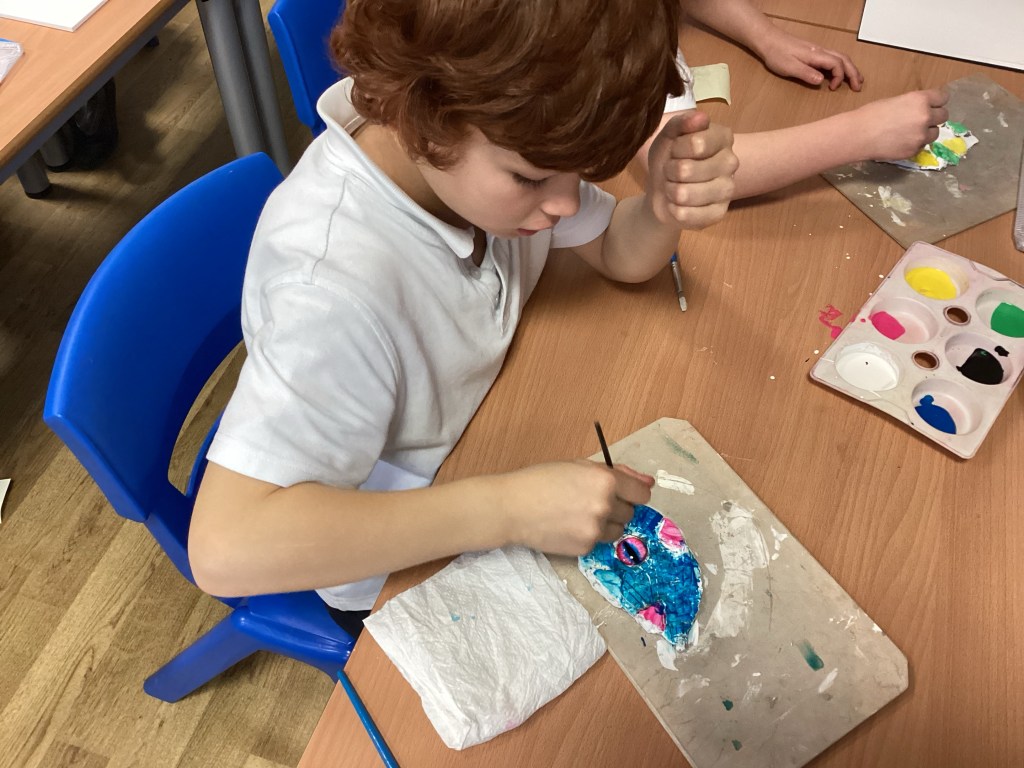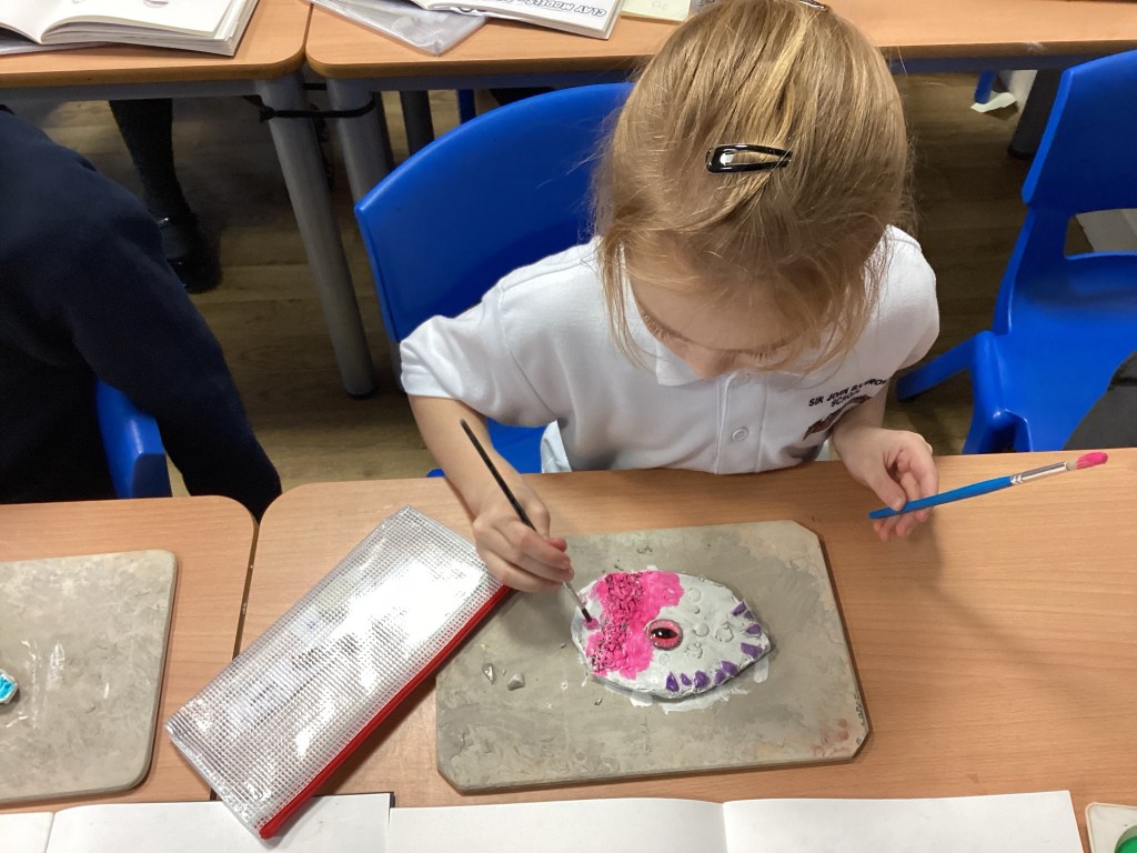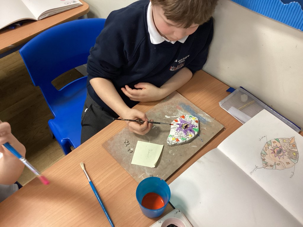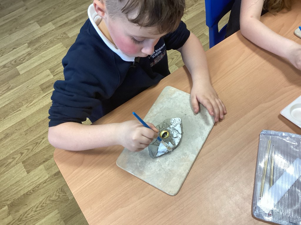 Year 2 were busy painting their clay dragon eyes following their designs on Friday. We will show you the finished pieces soon!