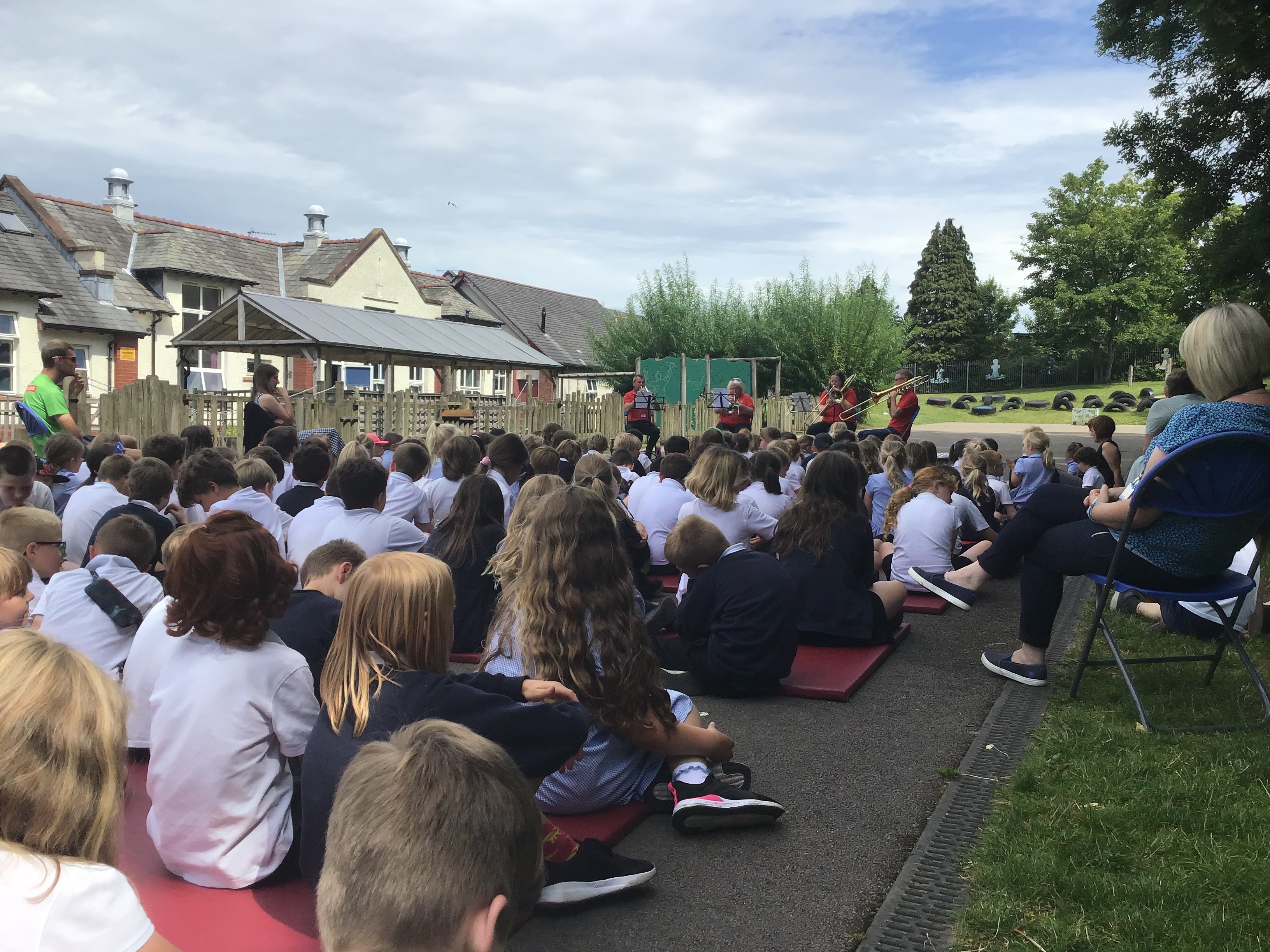 This afternoon we had some members of Ulverston Town Band come and perform in our playground. They played lots of tunes we knew (including baby shark!) and showed us how the instruments worked.