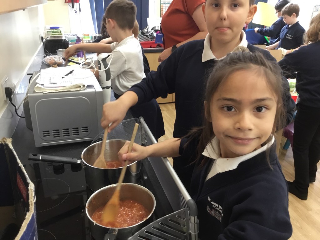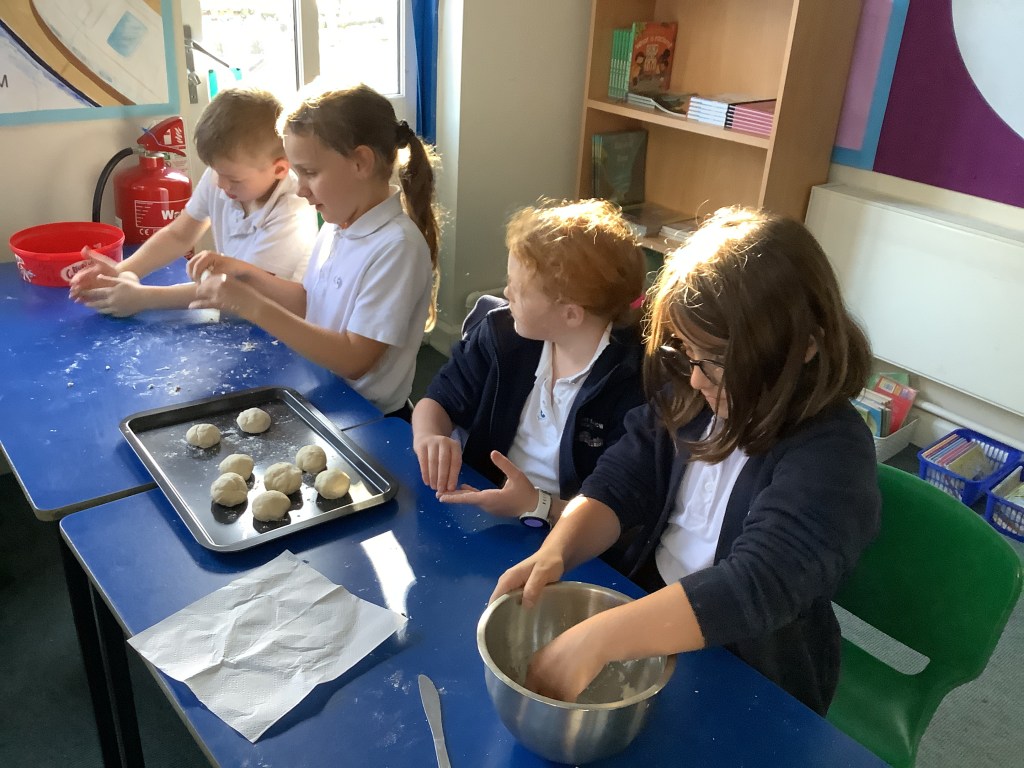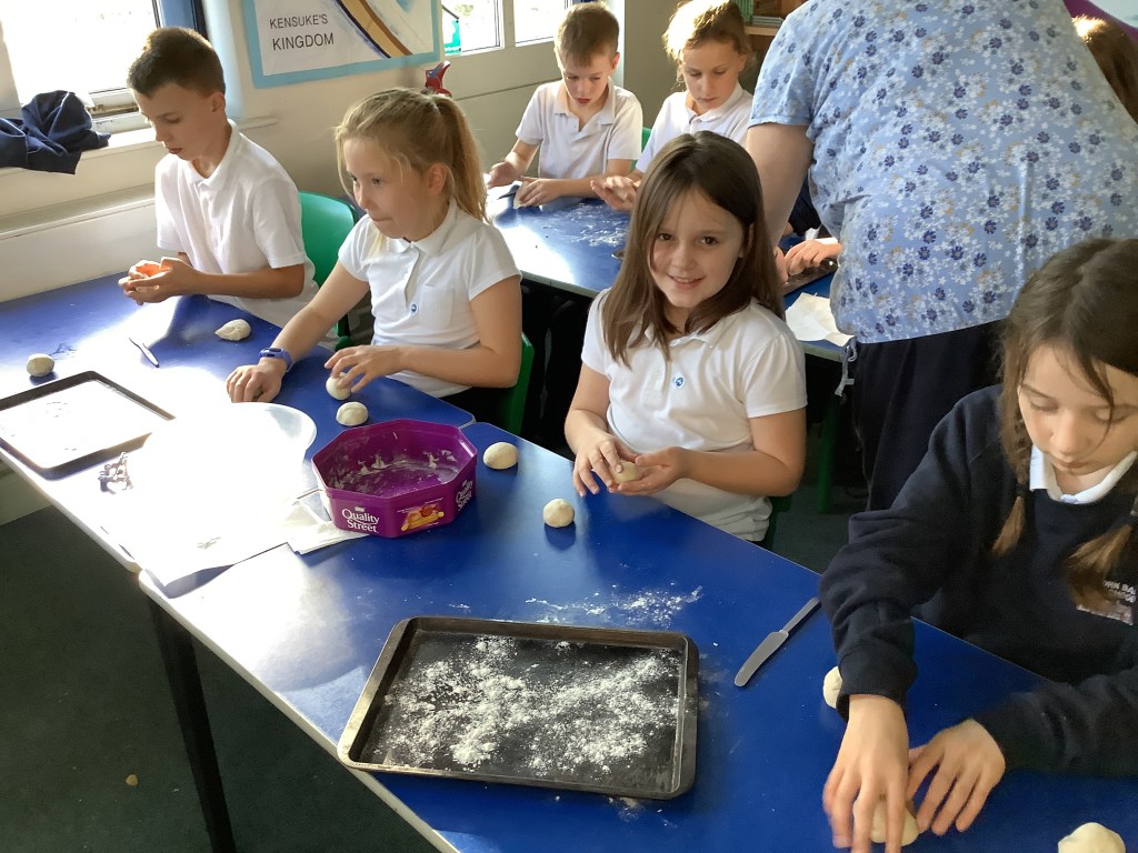 Year 4 had great fun last week learning to cook home-made pizza, mini bread rolls and home-made soup. We learned that when preparing these things ourselves, we can regulate the amount of sugar, salt and other additives in the food. Now we really know what we’re eating: healthier and tasty too. Yum yum!