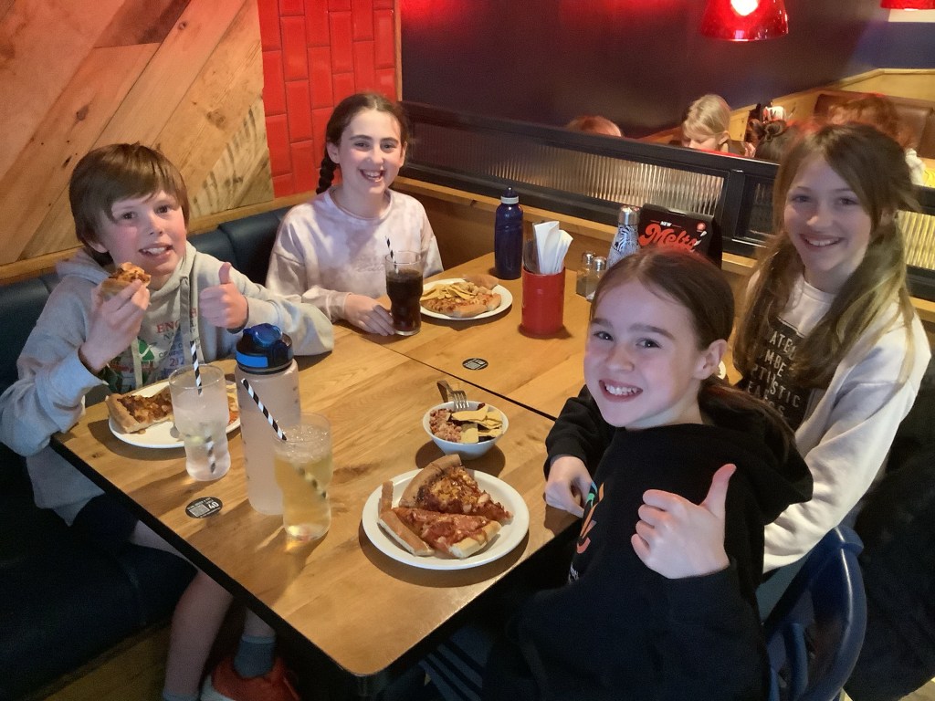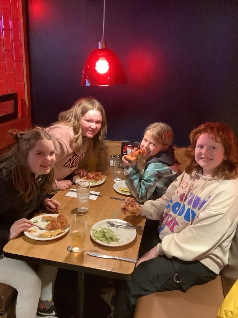 Year 6 now enjoying pizza!