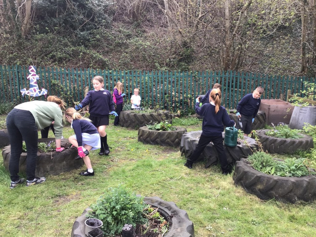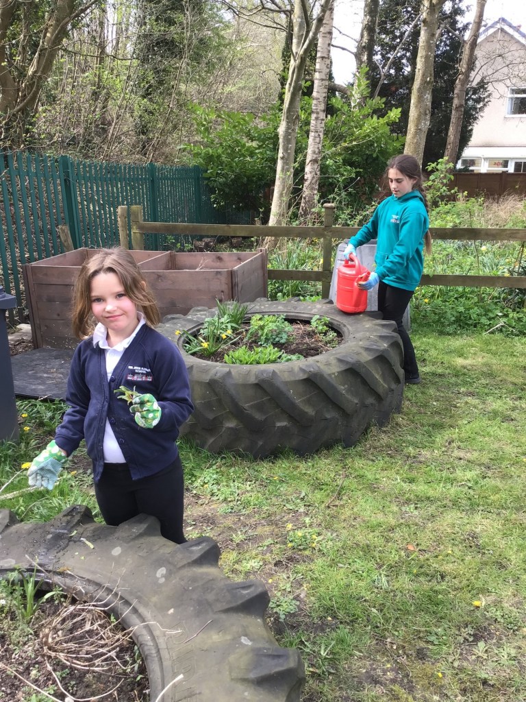 The eco committee have been busy tidying up the garden and doing some Spring planting.