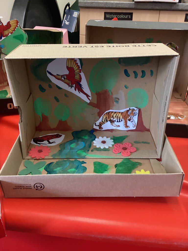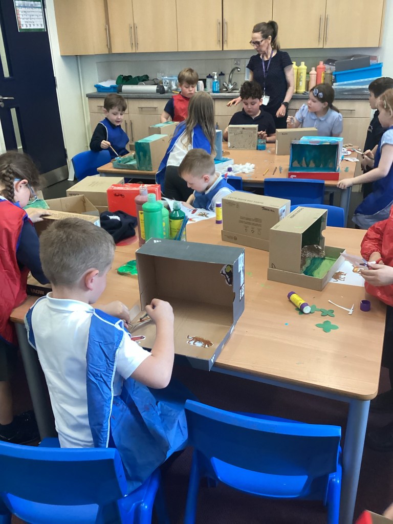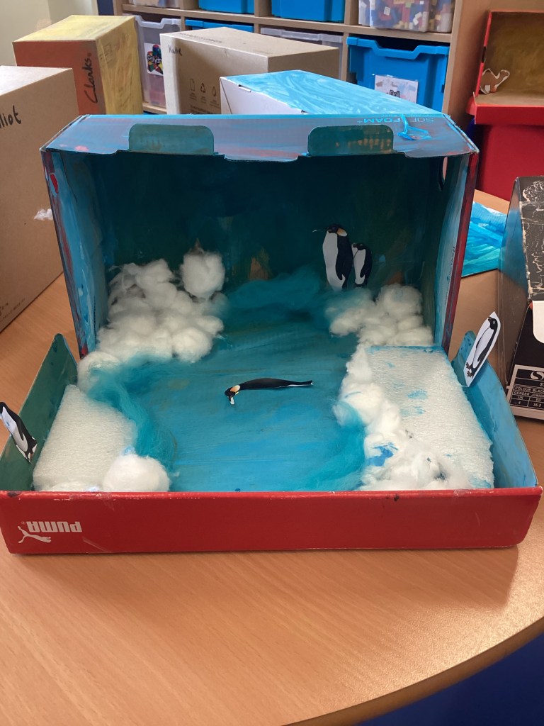 Year 1 enjoyed making their dioramas in Geography today. We had rainforests from Brazil, deserts from Africa and ice caps from Antarctica. The children worked very hard and were proud of their artwork!