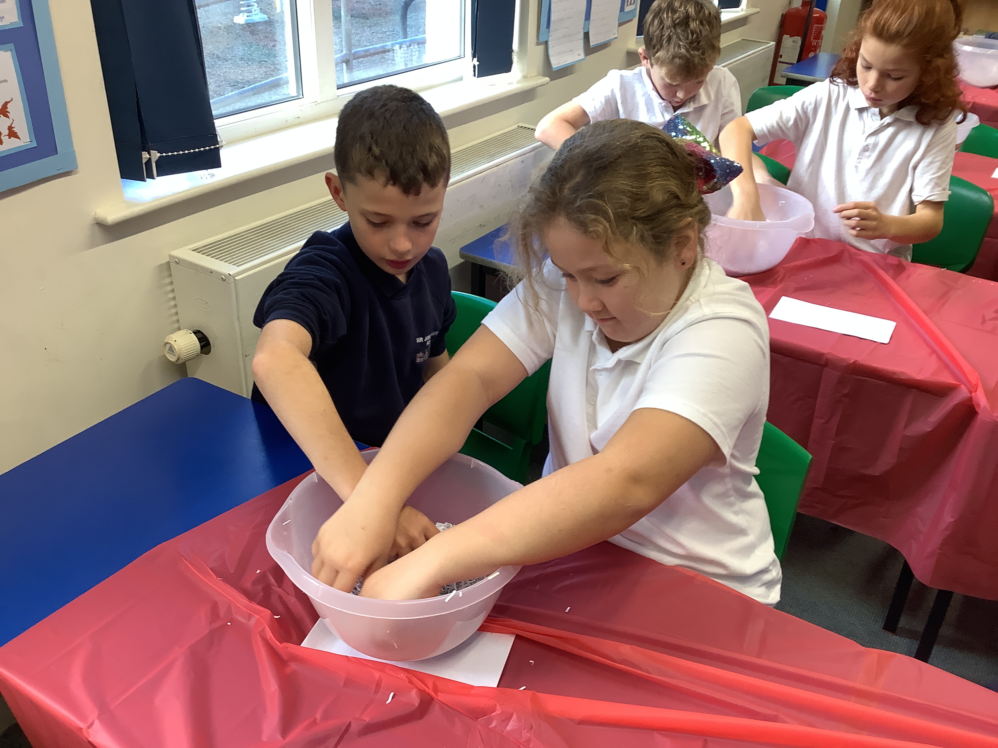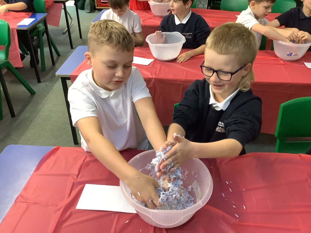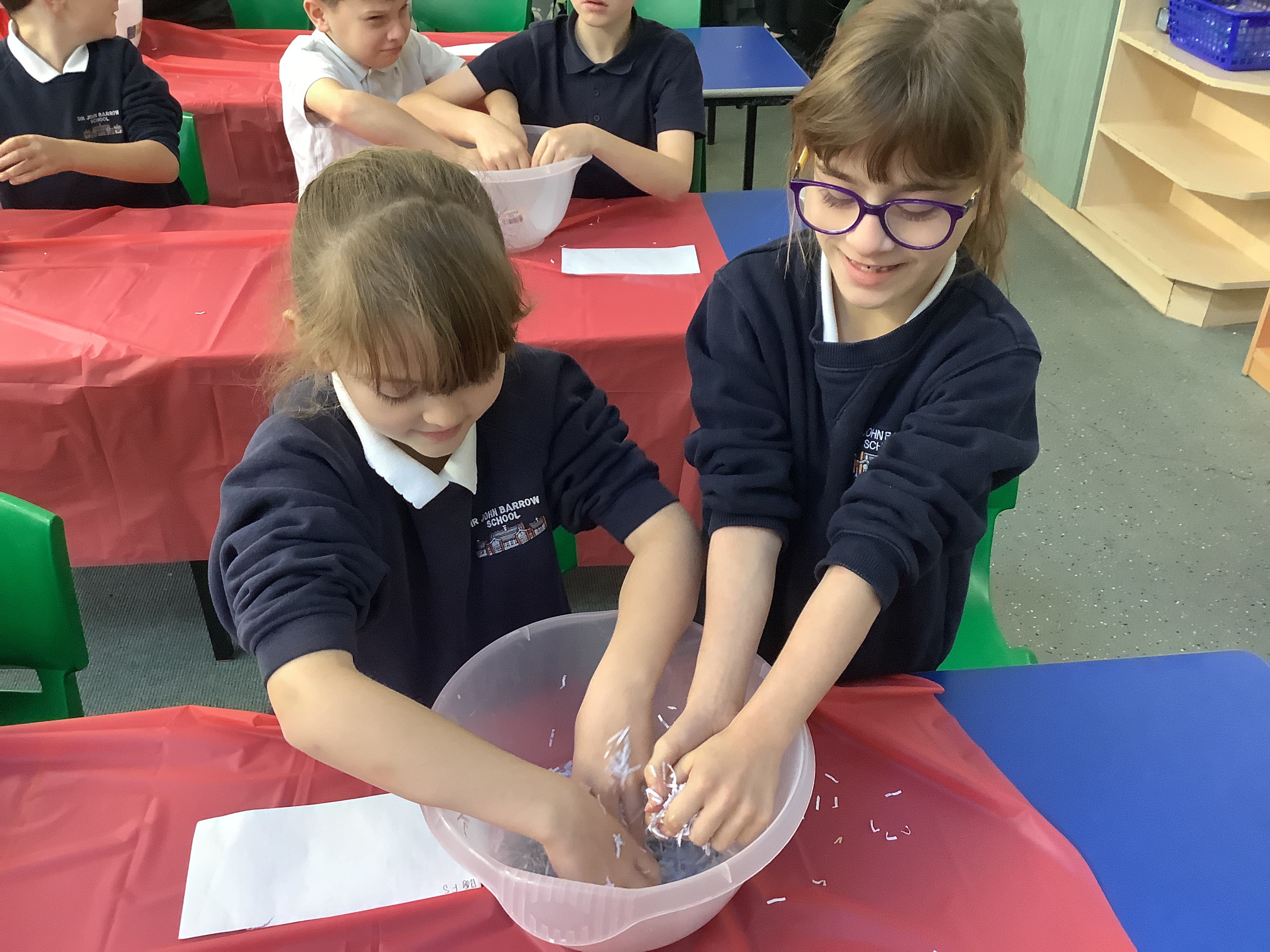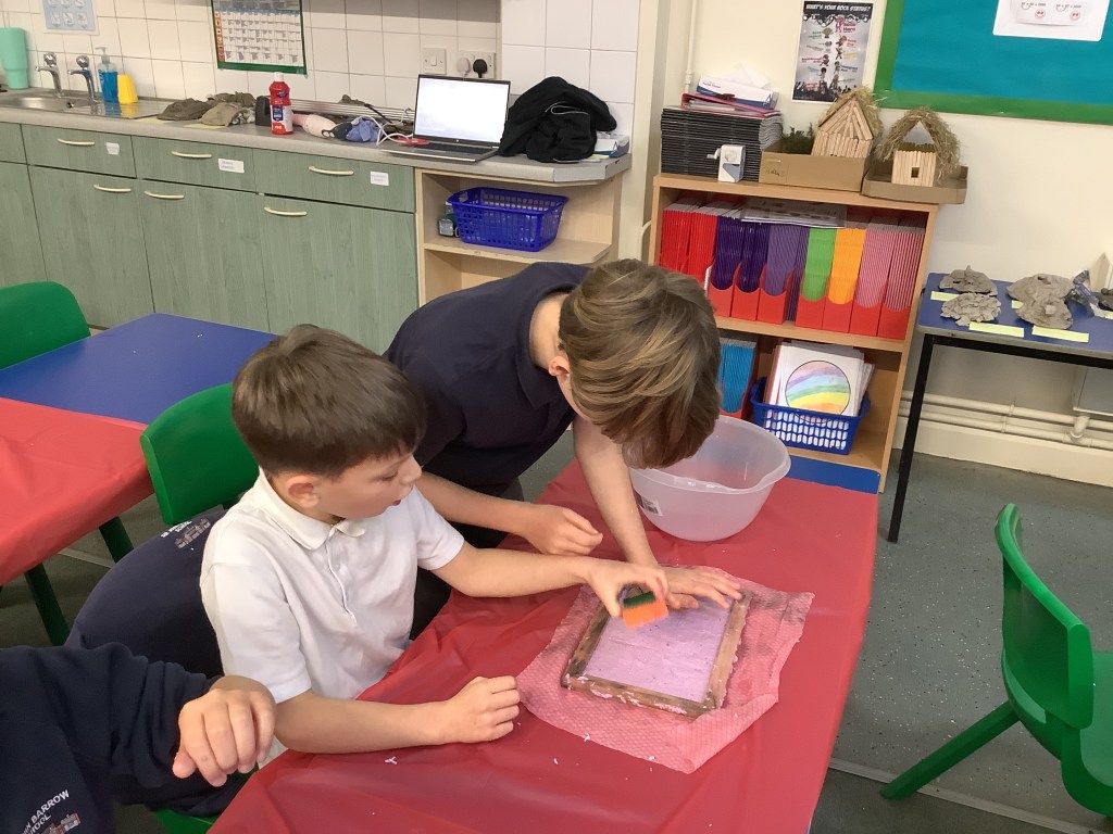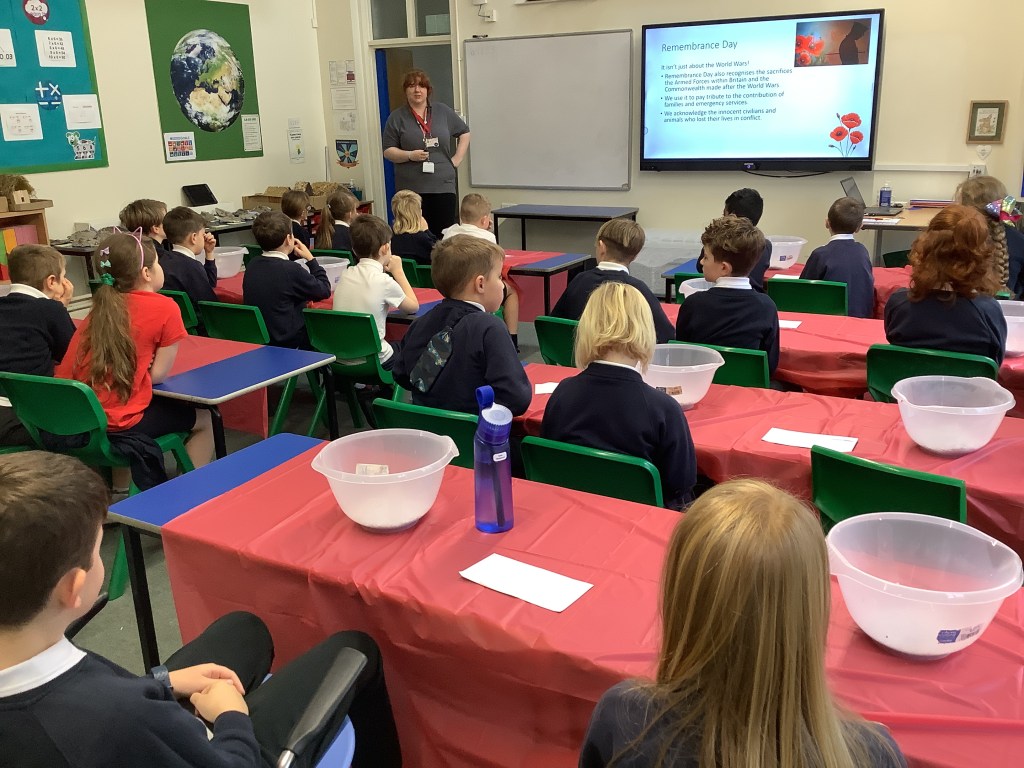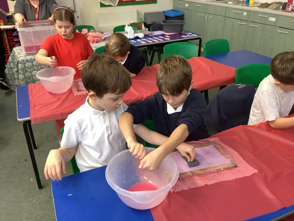 Year 4 learnt all about how to make paper from first principles and used their newly-newly-aquired technological knowledge to make commemorative poppies for this year’s season of remembrance.