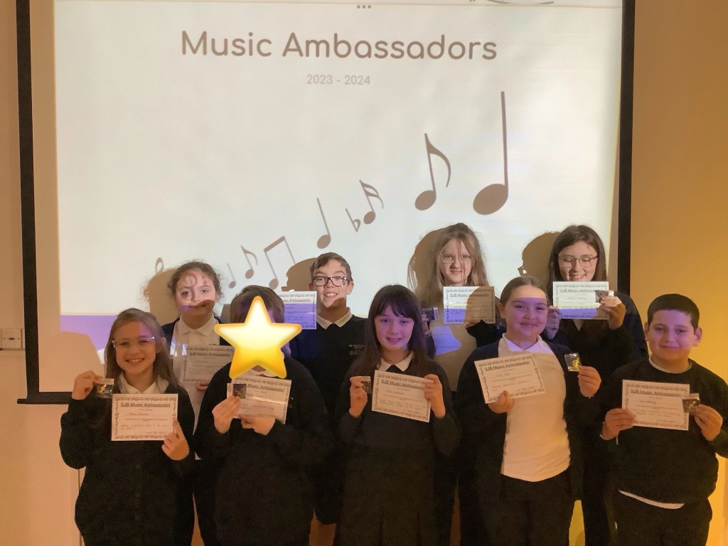 We have some new Music Ambassadors at SJB. These children have been selected to represent, model and enhance music in school. They each have shown unique talents and in assembly they were introduced explaining why they had been chosen.
