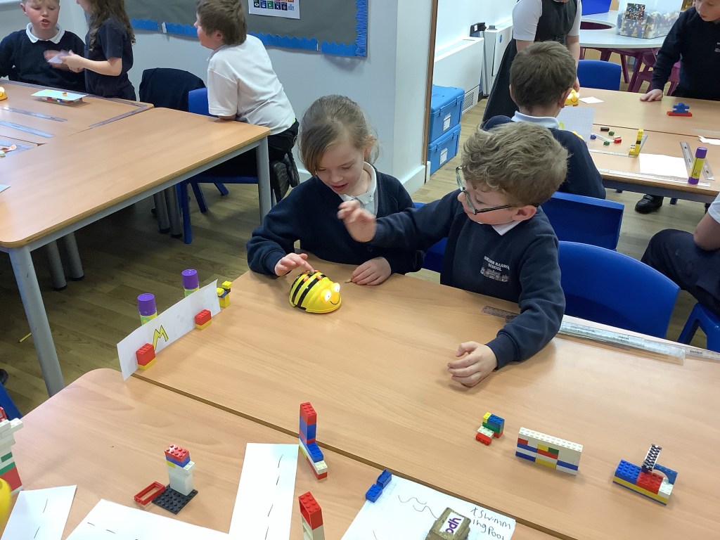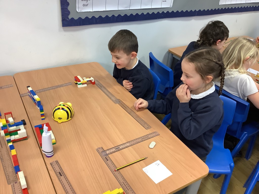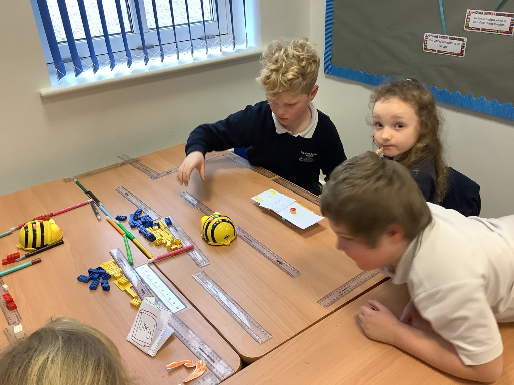 We worked with the Beebots today. First we created a Bee-Bot World. Then we wrote a sequence of instructions and programmed the Beebots. Finally, we pressed go and watched what happened!