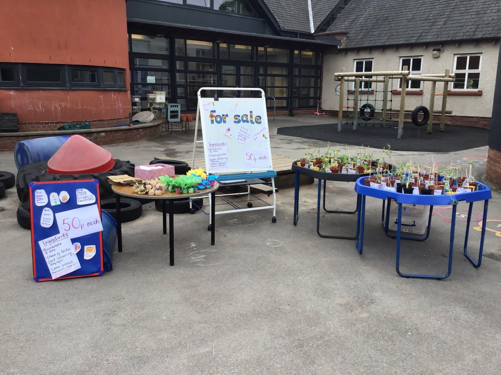 After school, Mrs O’Connor set up a stall in our playground and the grown ups came in to buy our produce. Everything was 50p each and we sold loads!