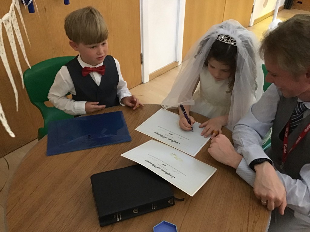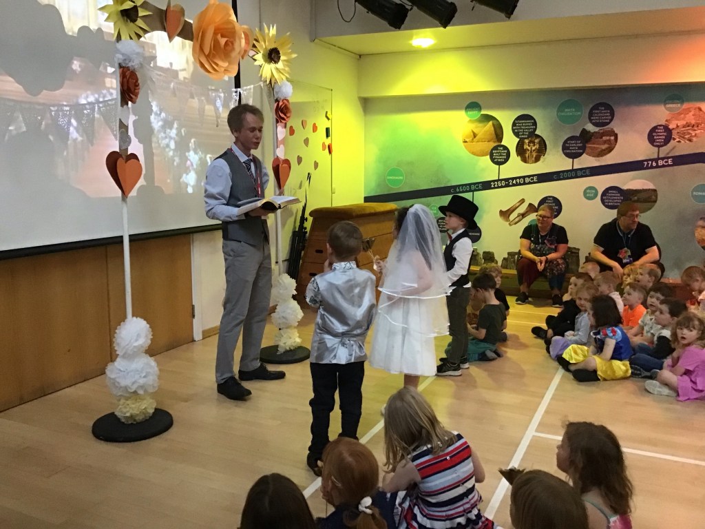 Year 1 celebrated the up and coming wedding of Miss Gardiner and Mr Kershaw by inviting everyone to a wonderful wedding of their own. Many thanks to Ole Kristian Hunt from Grace Baptist Church for conducting the ceremony. The happy couple even made a spectacular exit on a bicycle made for two!