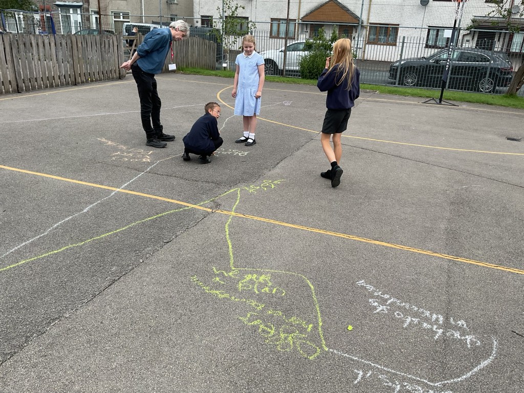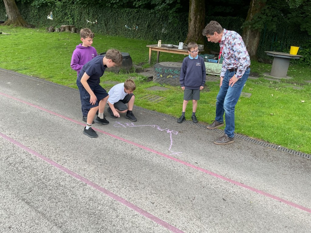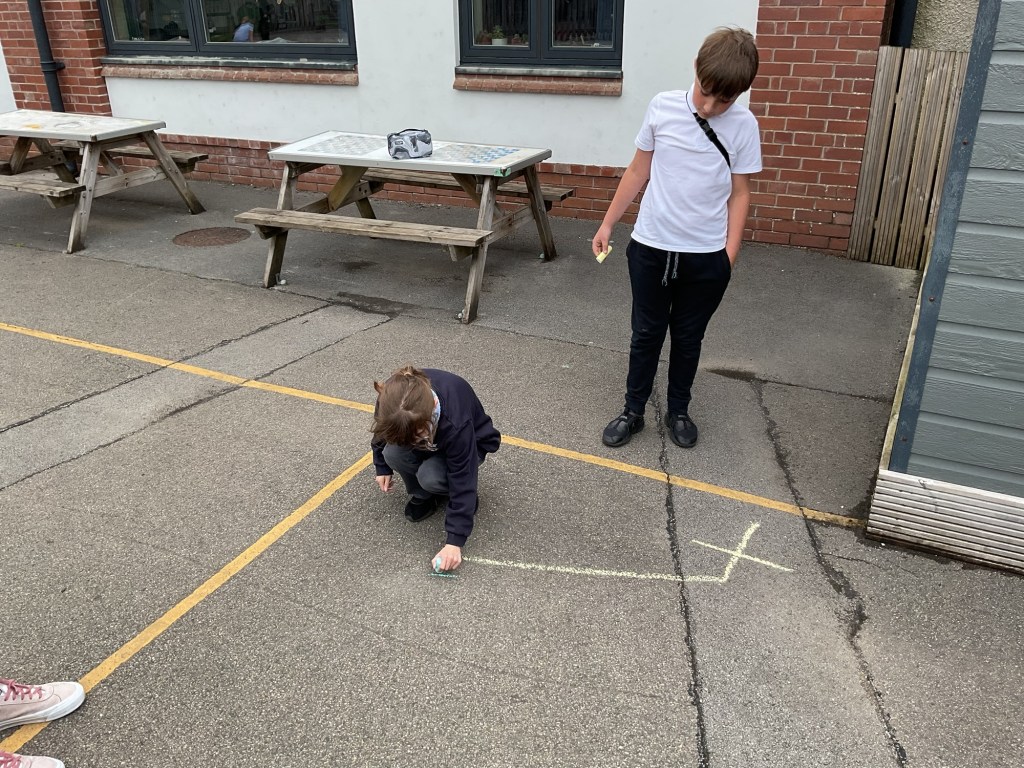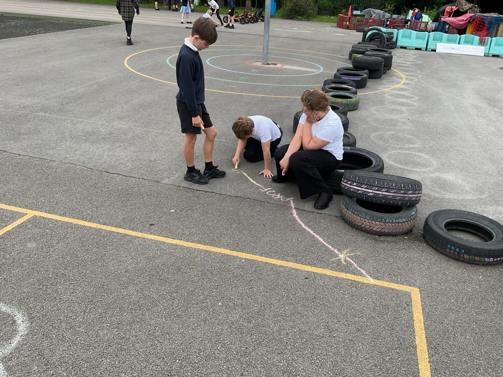 Year 5 today have been mapping emotion graphs for their stories on the playground in preparation for their performances.