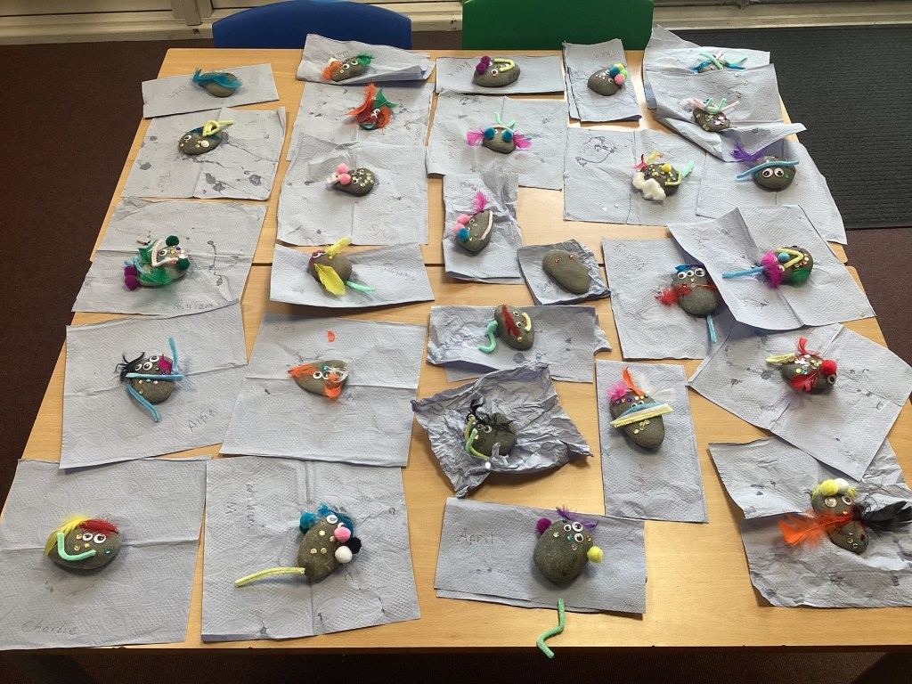 Year 1 have enjoyed reading The Bog Baby this week in drawing club. They have done some fabulous drawings and written some super sentences to create stories about a Bog Baby at school! Today the children crafted their own Bog Babies – please make sure they look after their babies when they take them home!