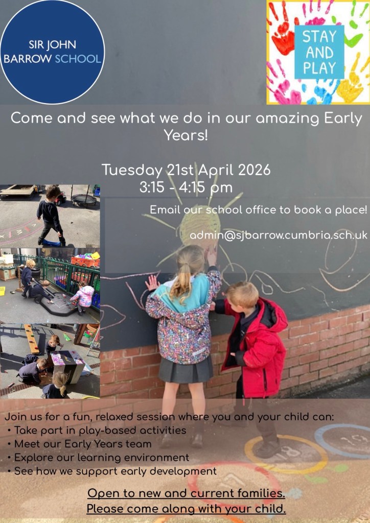 On Tuesday 21st April at 3:15pm, we will be hosting a Stay and Play event in our Early Years playground for current and future Nursery and Reception children.