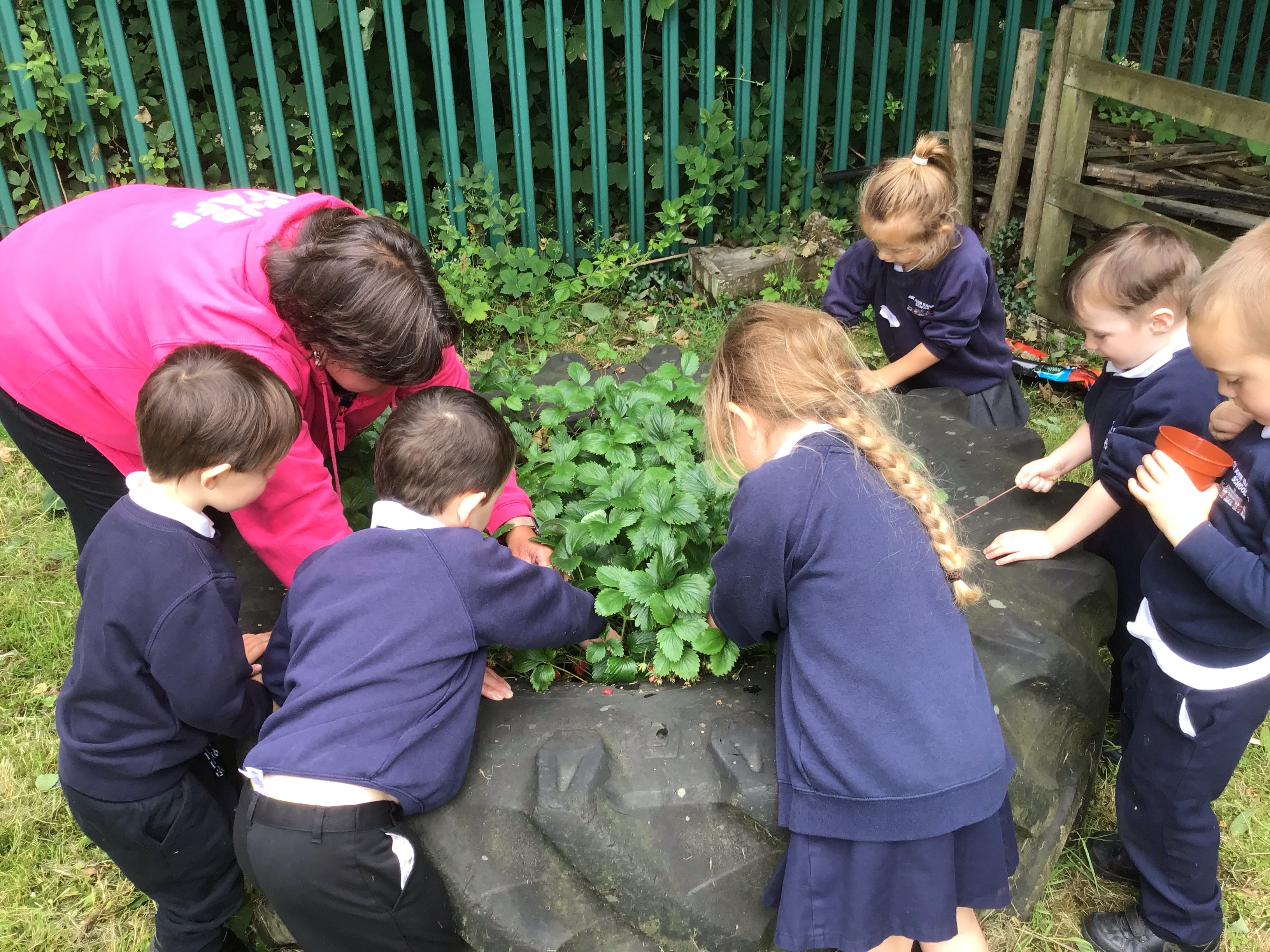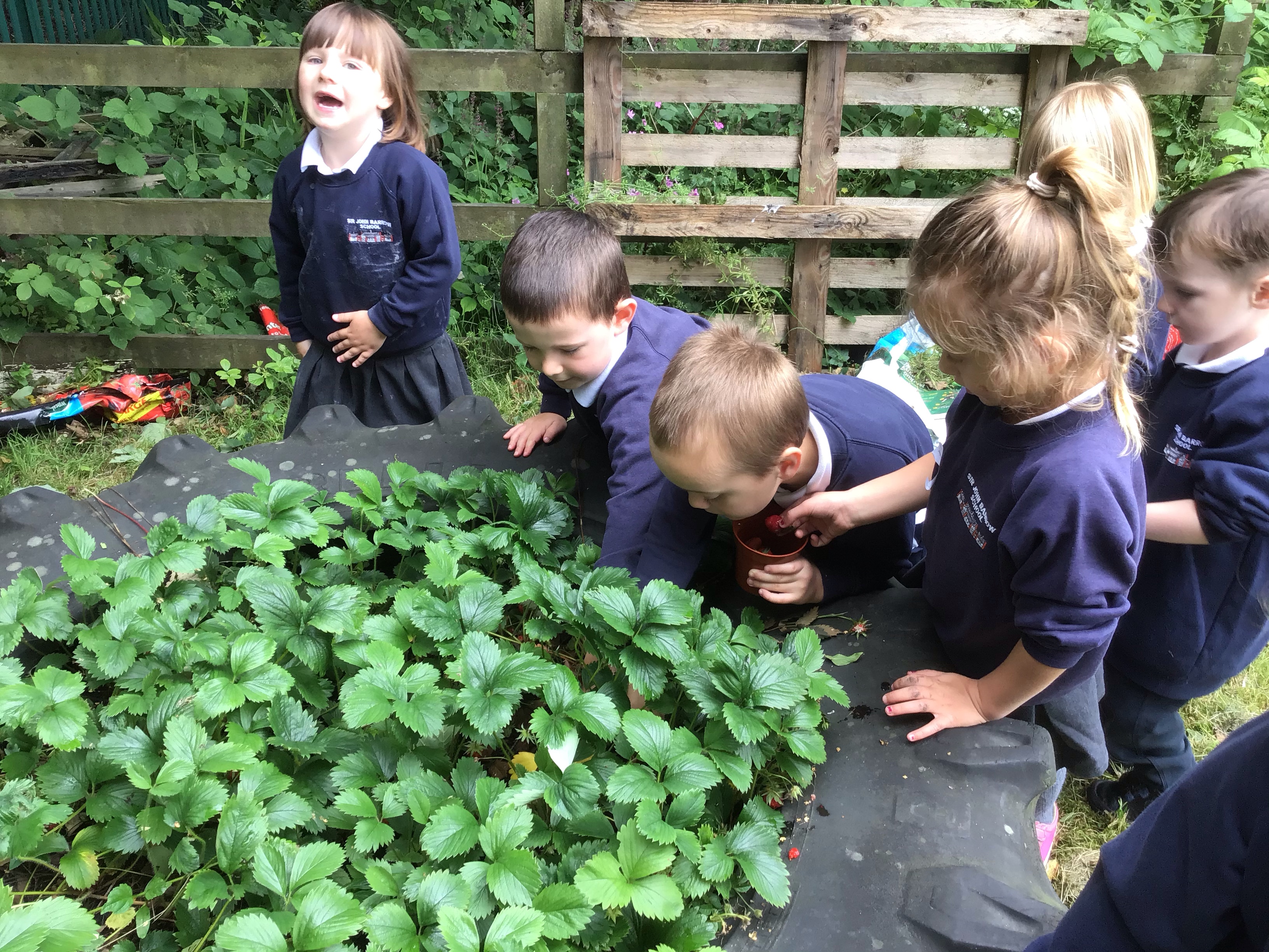 Later on we picked some strawberries for an afternoon snack and we found some mint which we decided smelled like toothpaste.