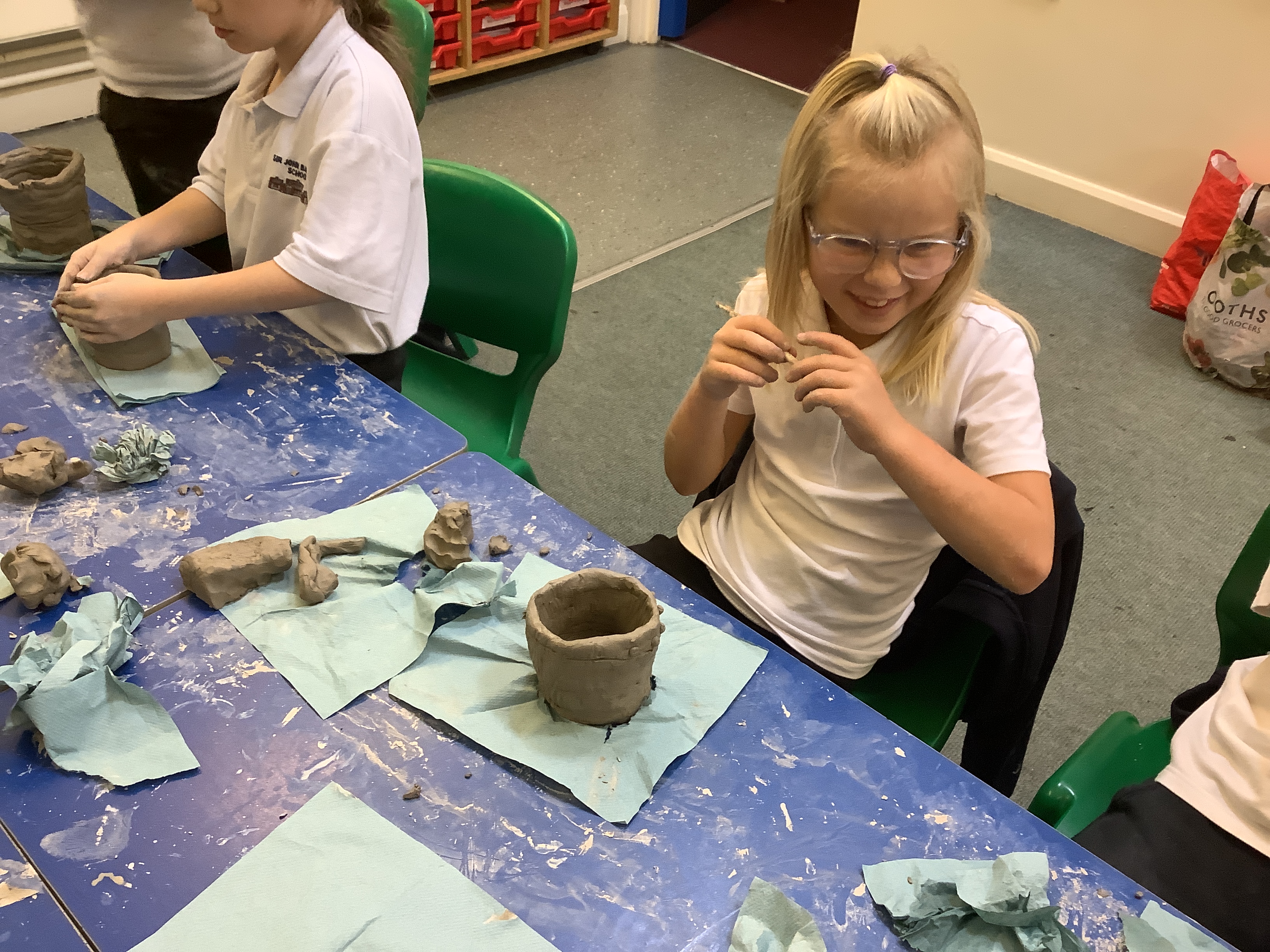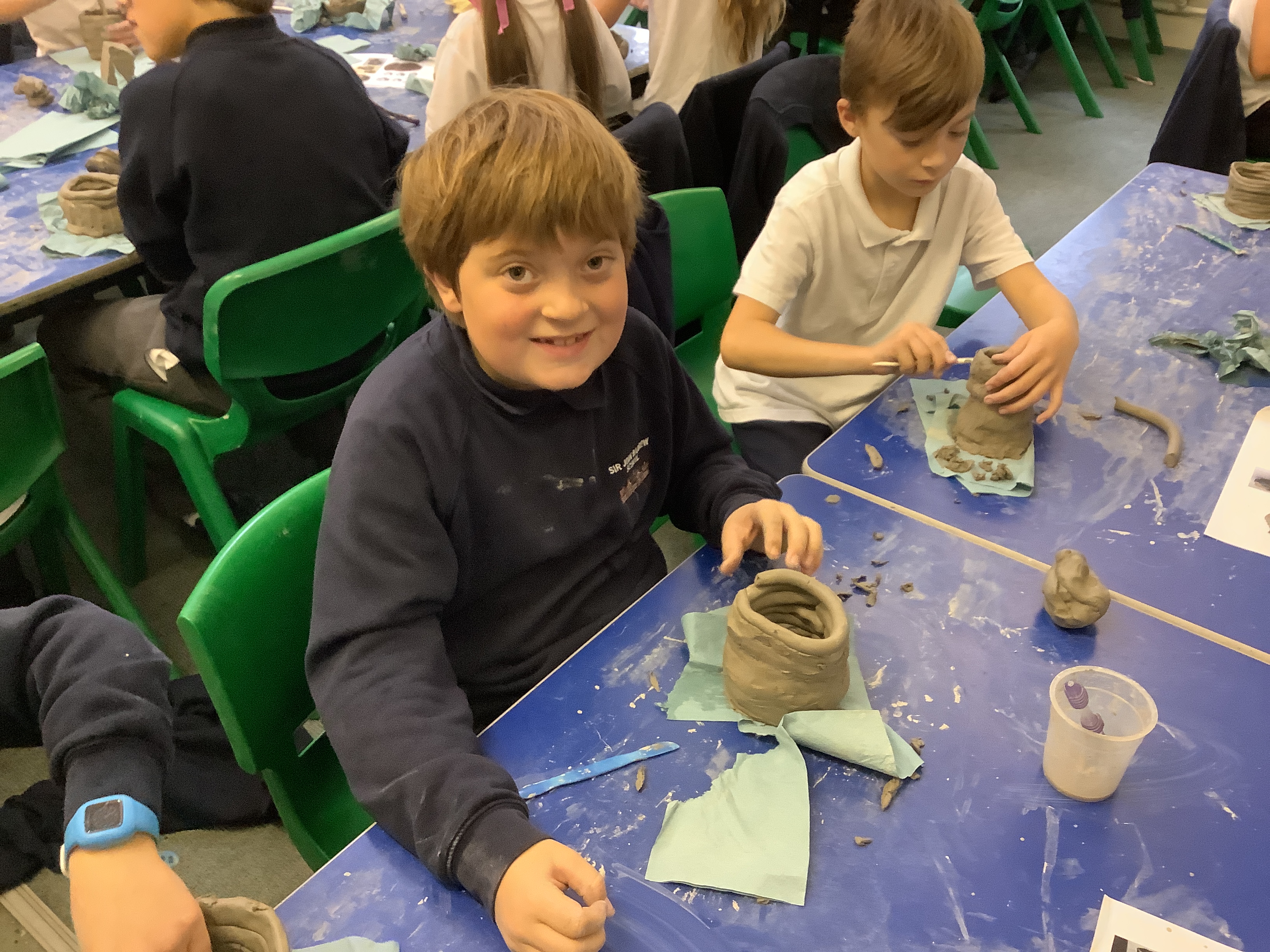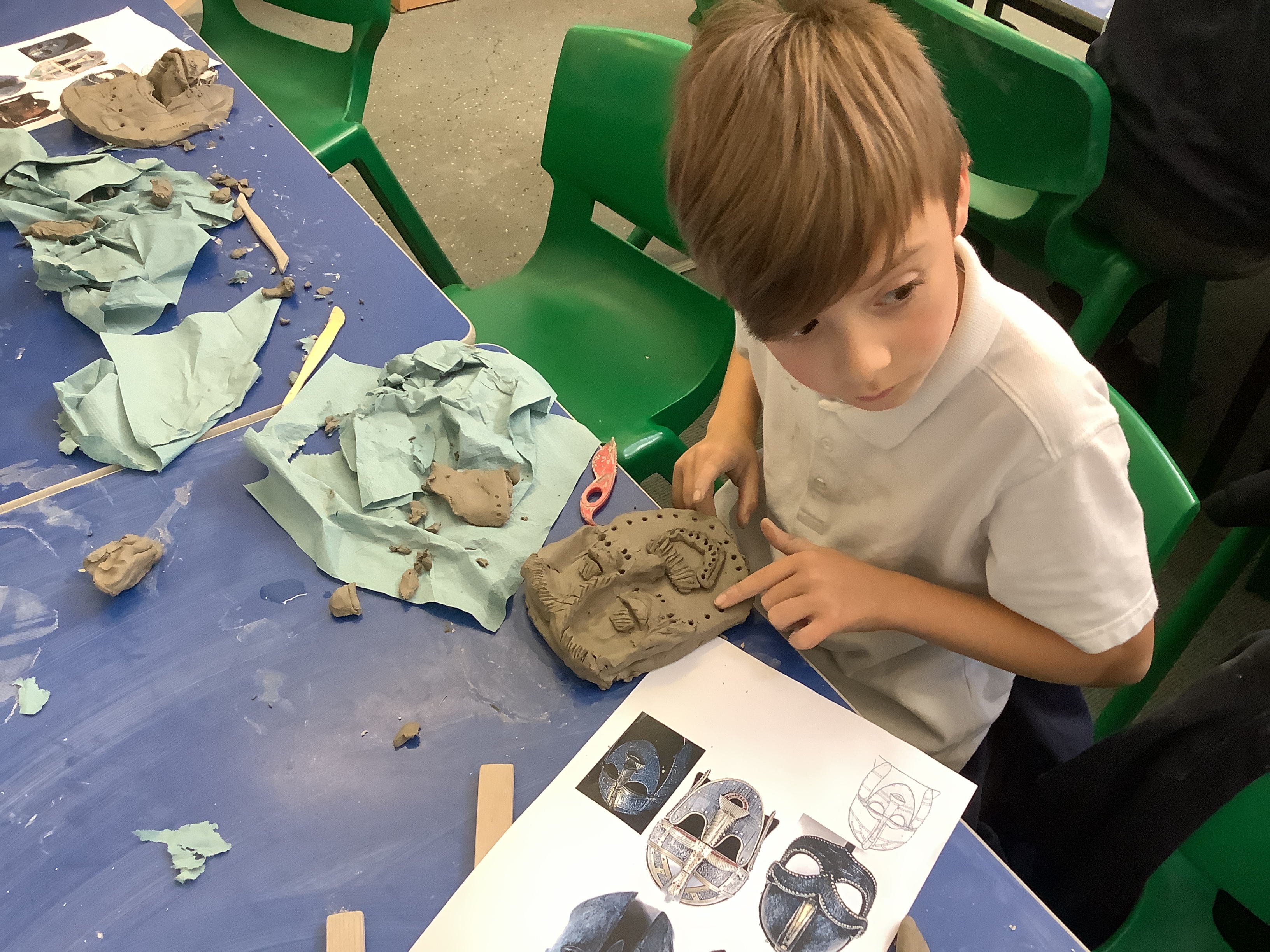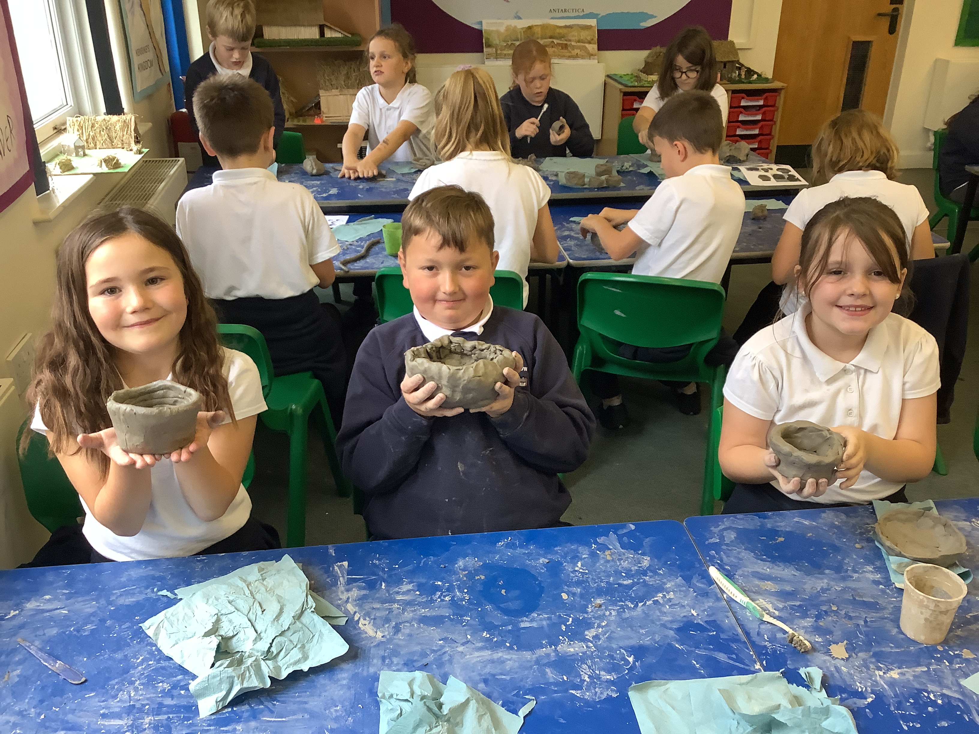 Year 4 had a super time with Mr Hill, making Anglo-Saxon clay pots and masks, like the one found at Sutton Hoo. It’s harder than it looks to make a really good pot or mask without getting a bit dirty. Well done, Year 4. True Anglo-Saxons!