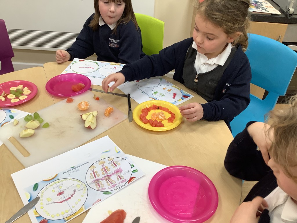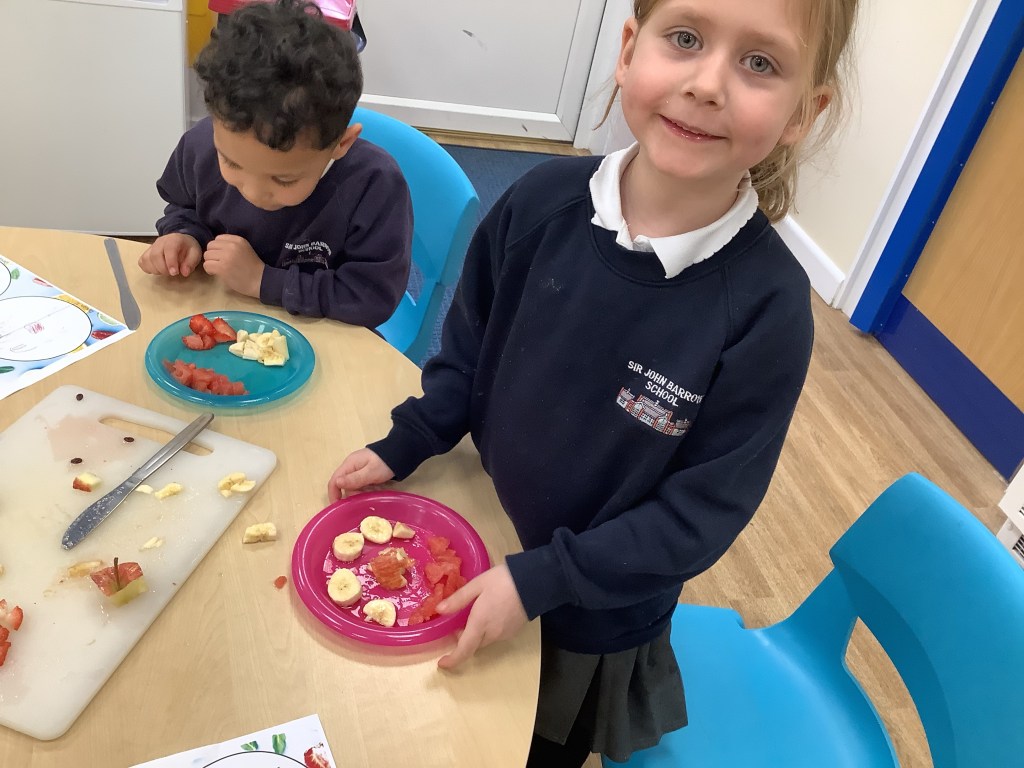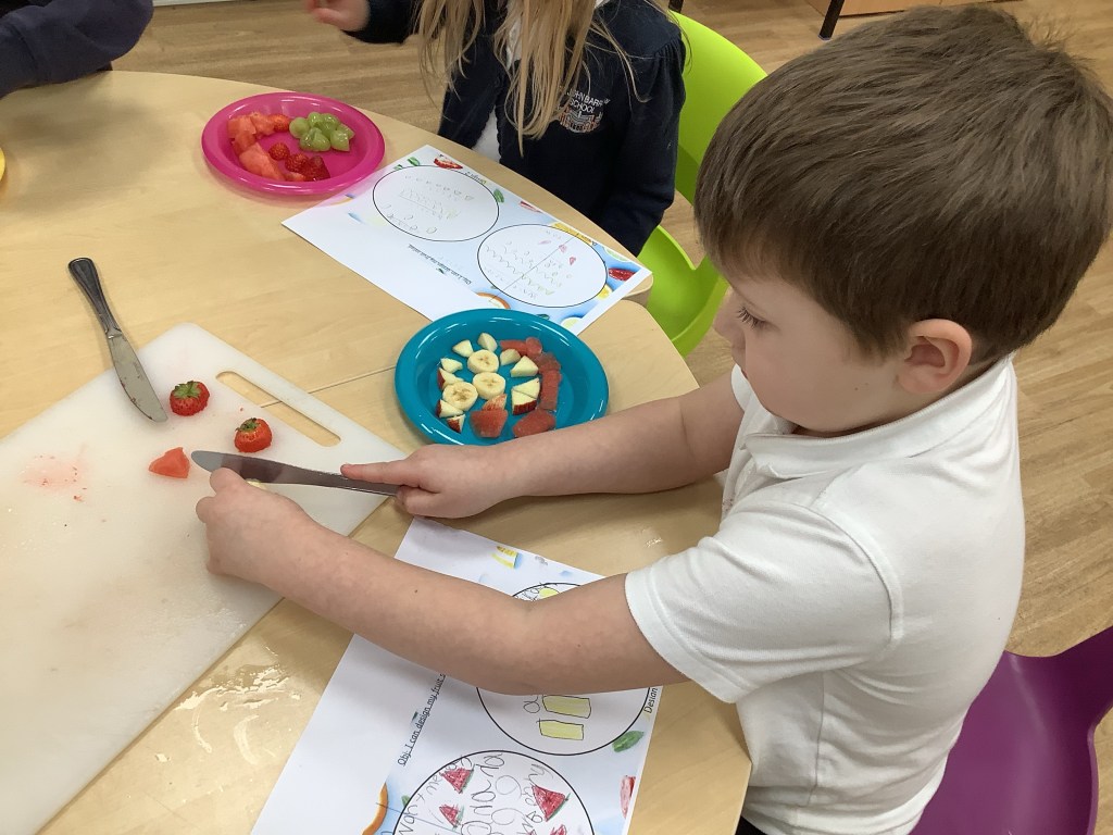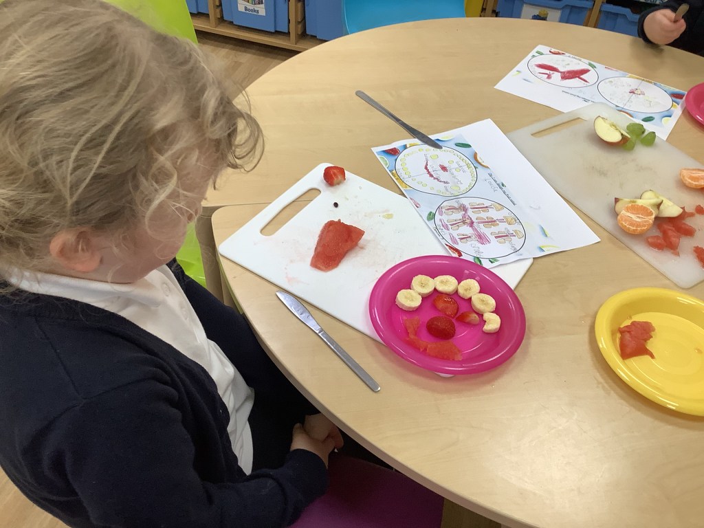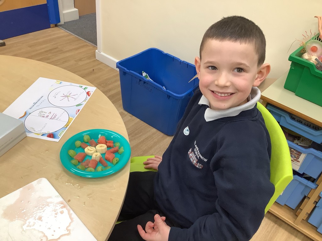 In Year 1 we have loved designing and making our own fruit salads. Yesterday we discussed where food comes from (animals and plants). We chose the fruit we wanted to have in our salad and made two designs. We discussed and drew how we wanted our salad to look like. There are some future chefs in the making!
