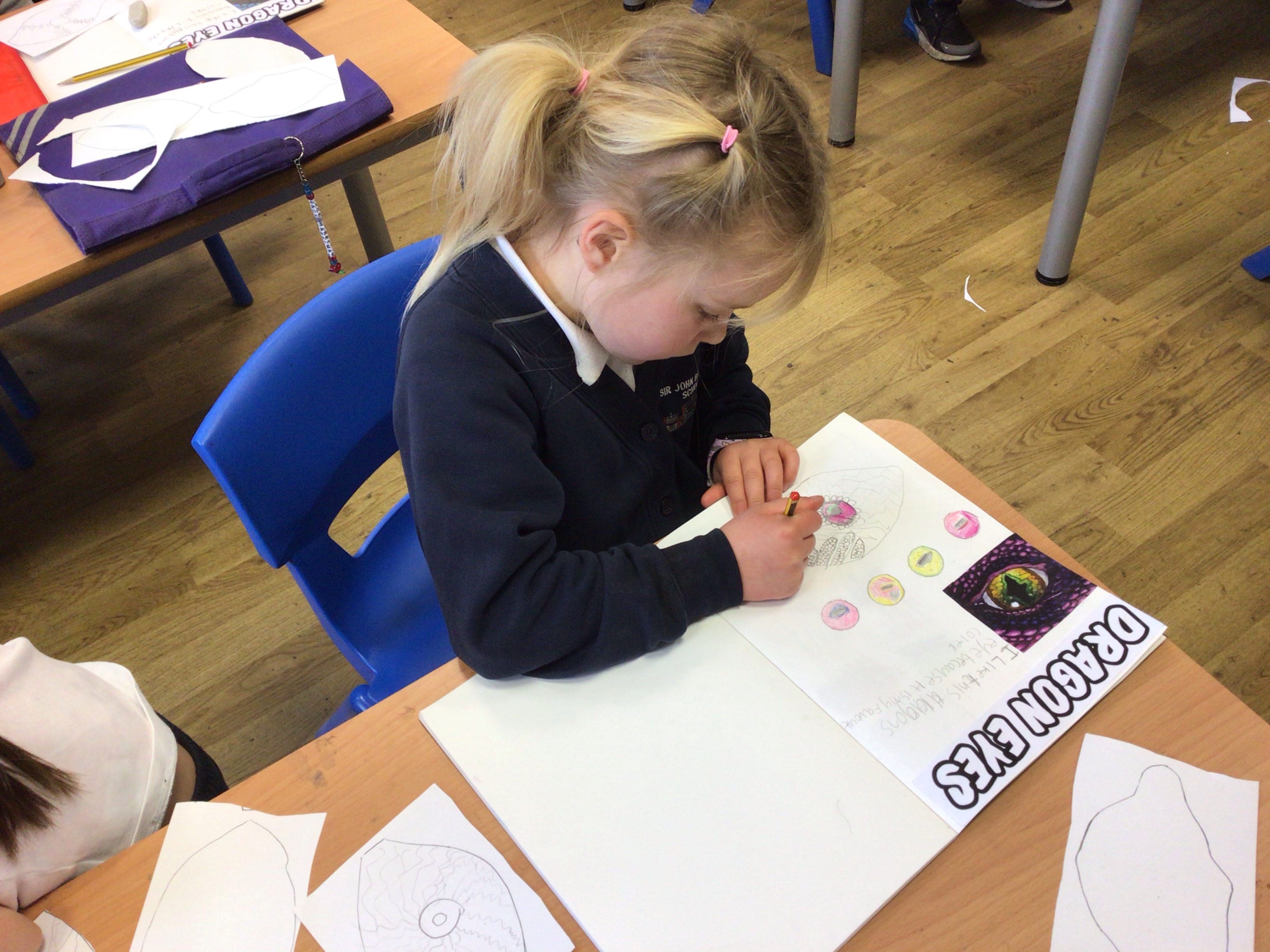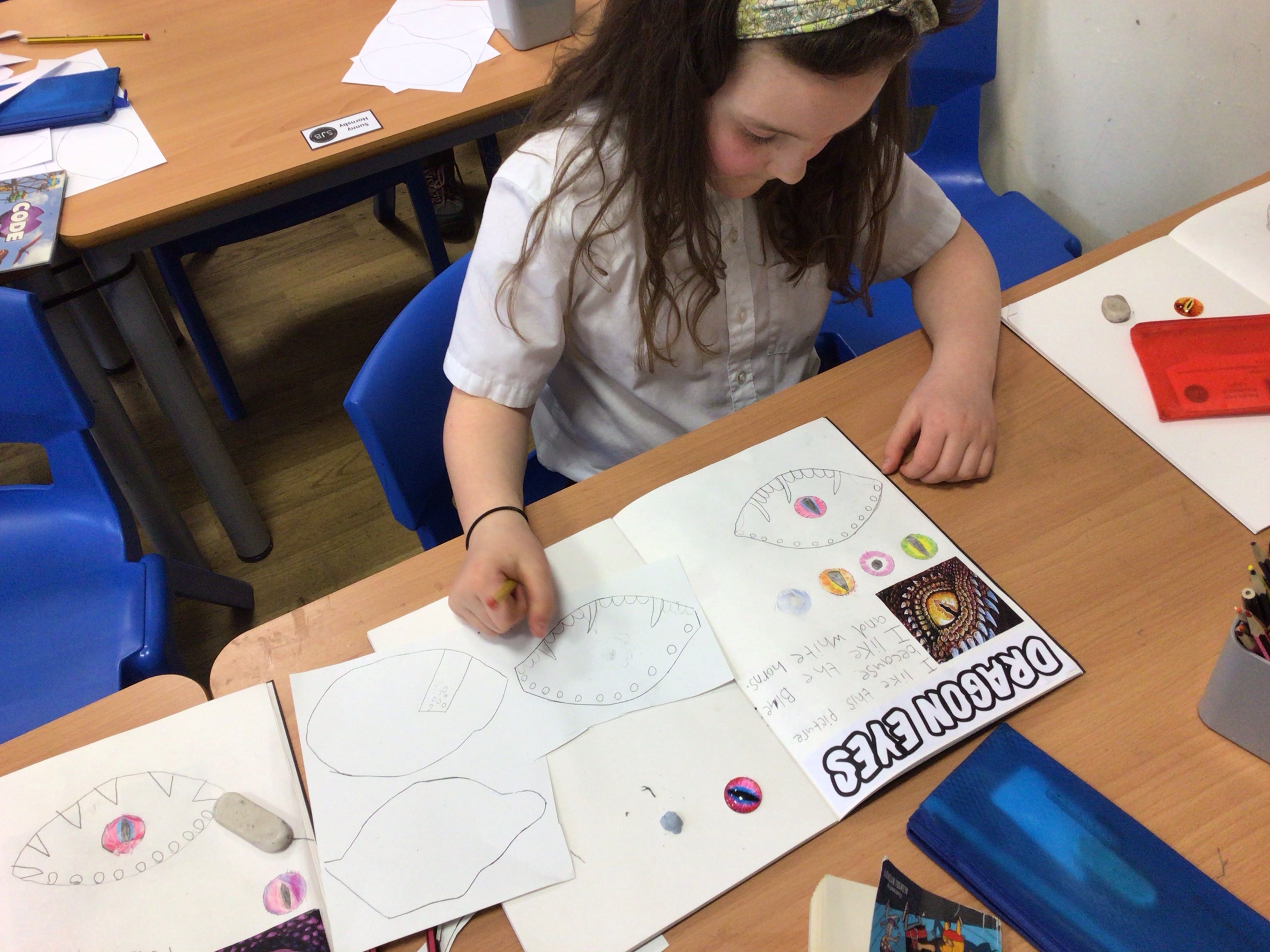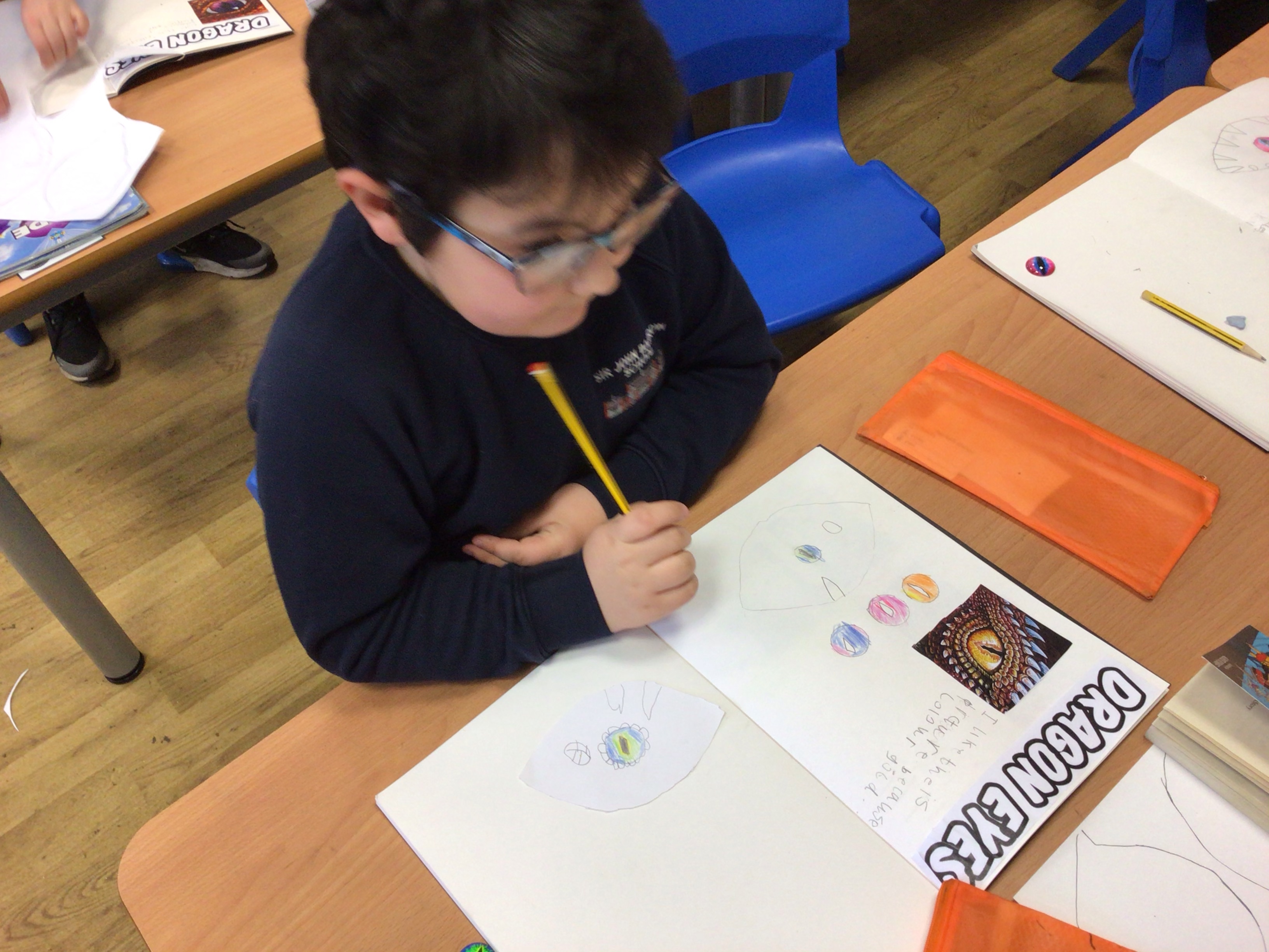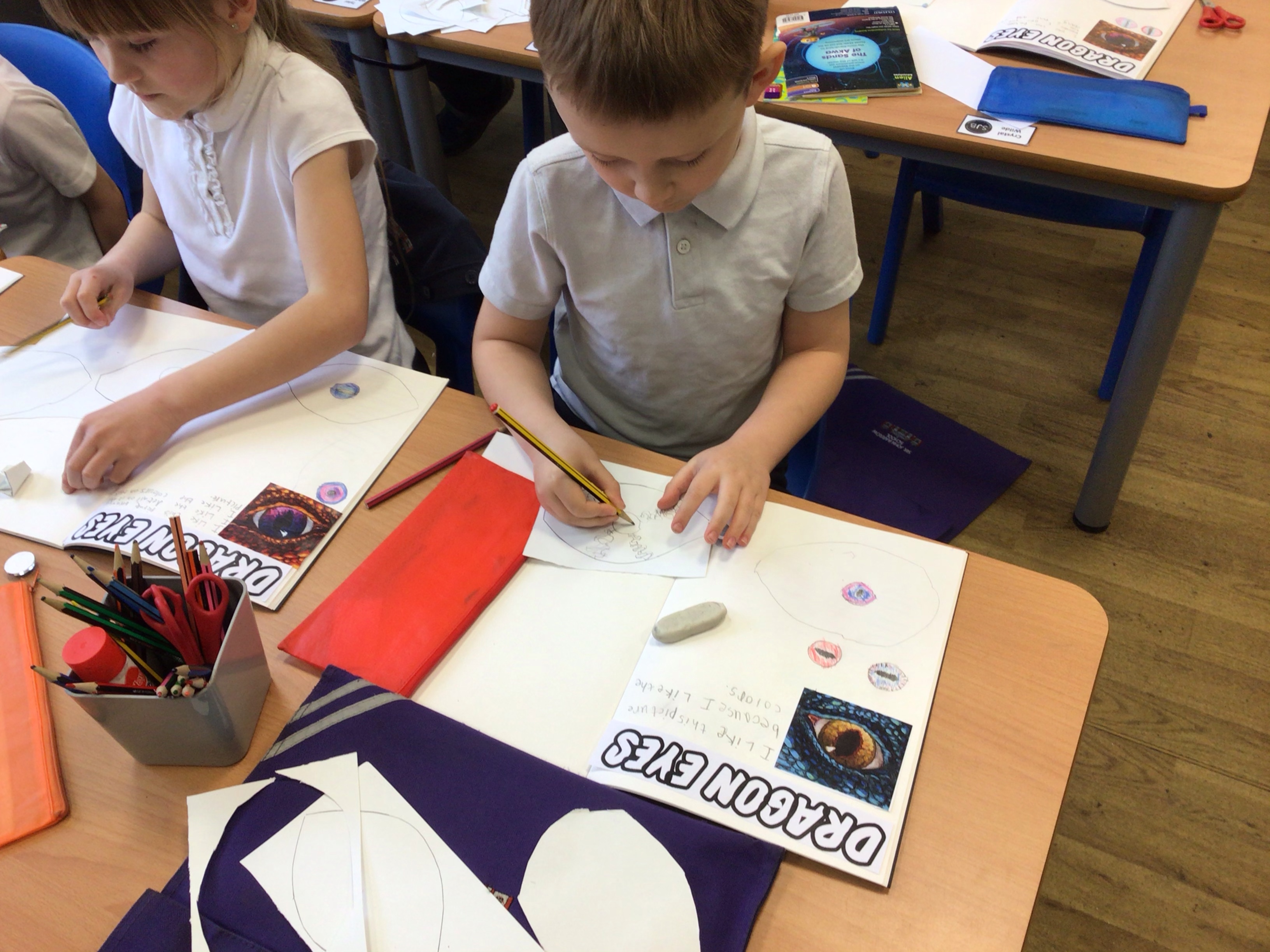Year 2 have been investigating and drawing Dragon Eyes in Art this week. Today we produced our own dragon eye design ready to make out of clay next week.